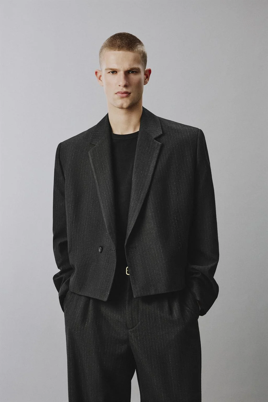 Укороченный пиджак костюма в полоску — Zara — ЗараТут