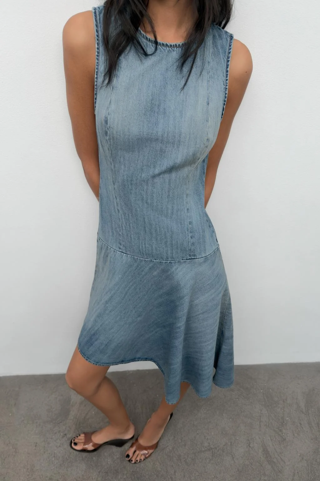 Платье ТРФ из джинсовой ткани с асимметричным кроем