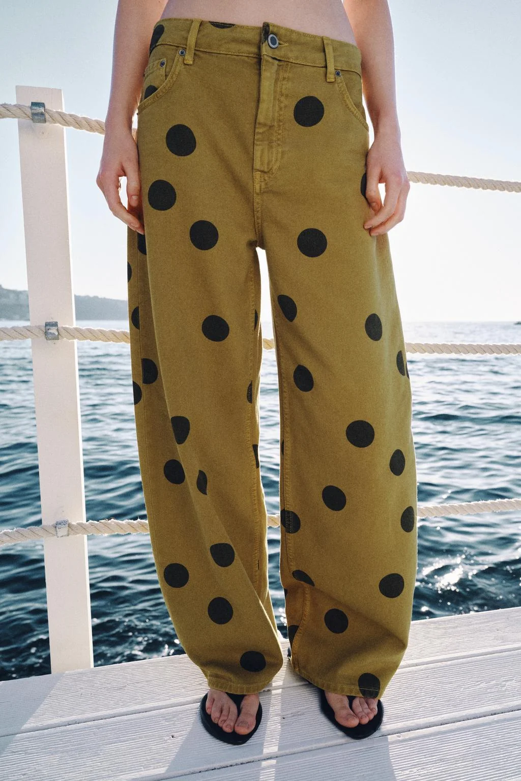 ZW COLLECTION BARREL MID-WAIST DOTS JEANS
