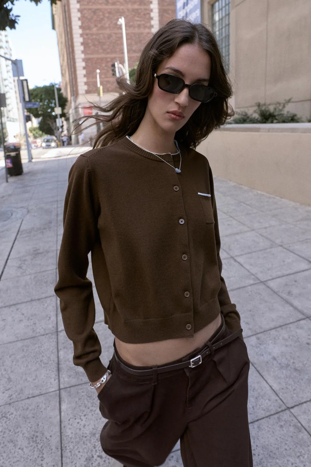 Комбинированный трикотажный кардиган — Zara — ЗараТут