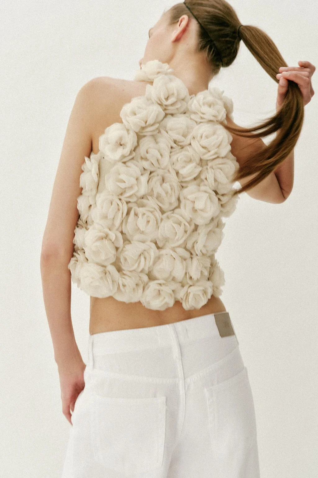 Халтер-топ из вязаной ткани с цветочным рельефным узором