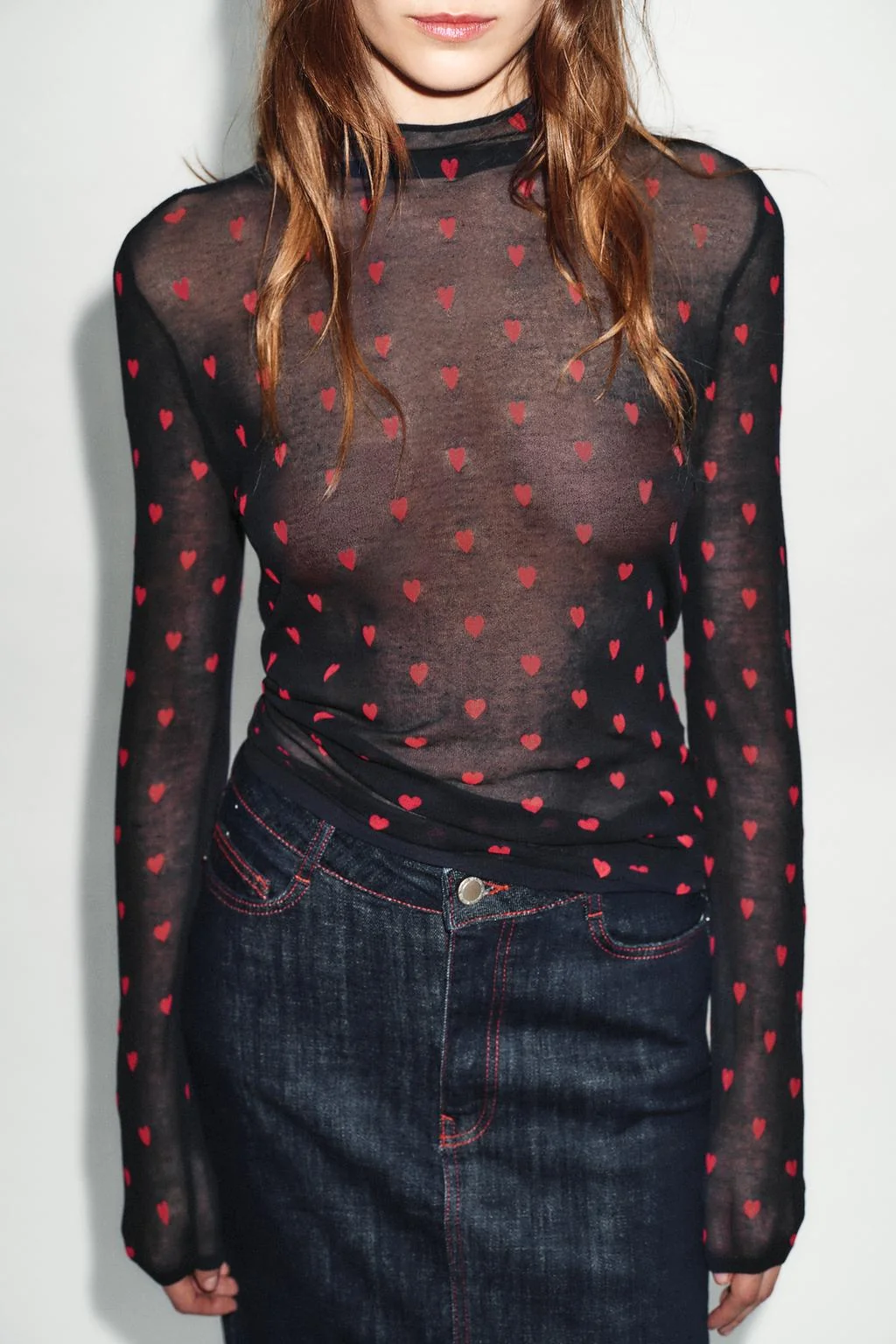 Трикотажный топ тонкой вязки с сердечками