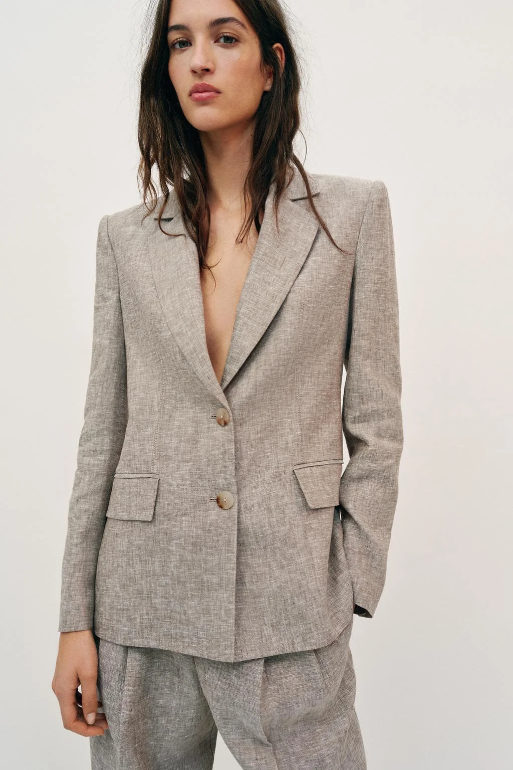 Набор: пиджак с накладными плечами и брюки из 100% льна — Zara — ЗараТут