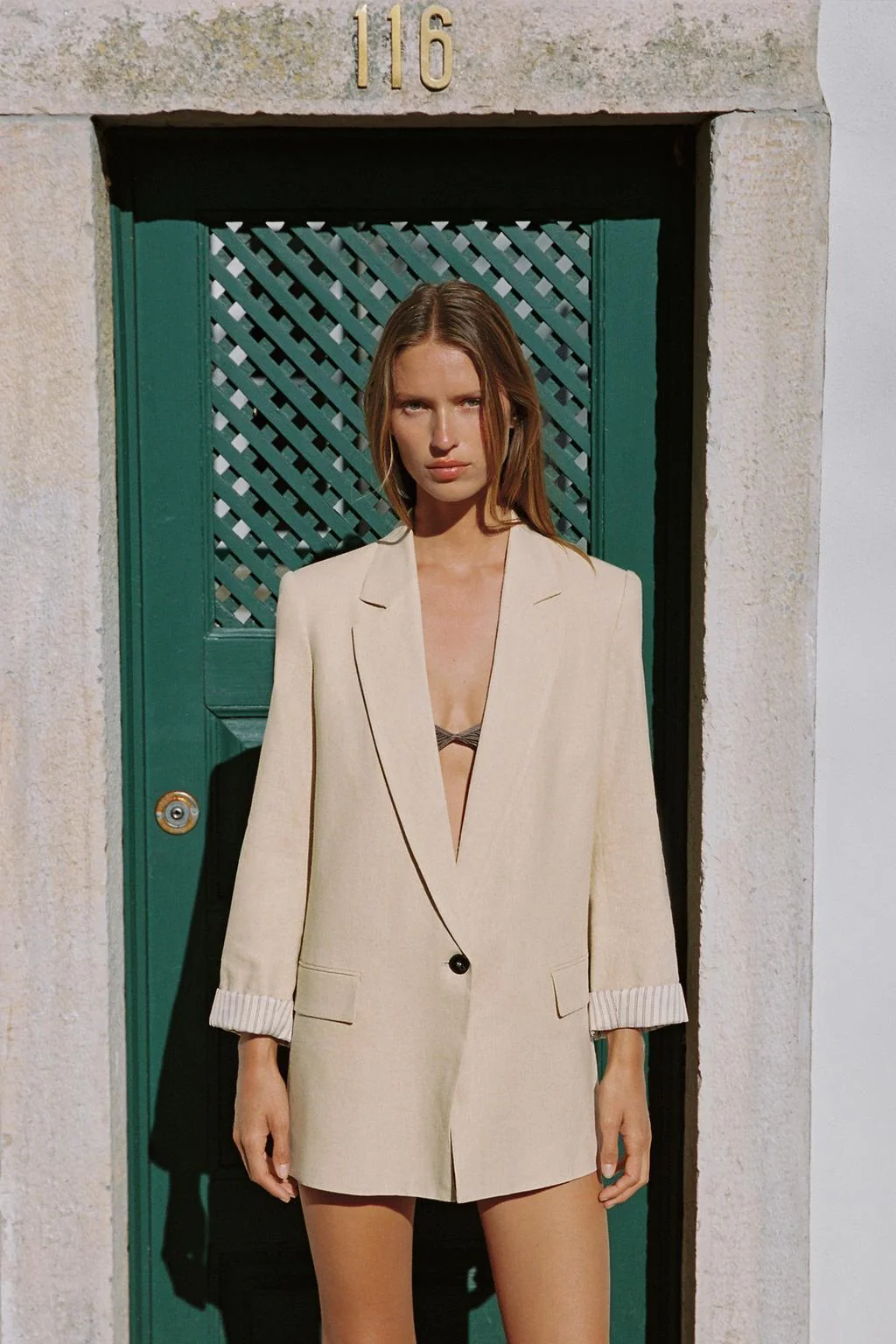 Пиджак с льняными рукавами, подкатанными