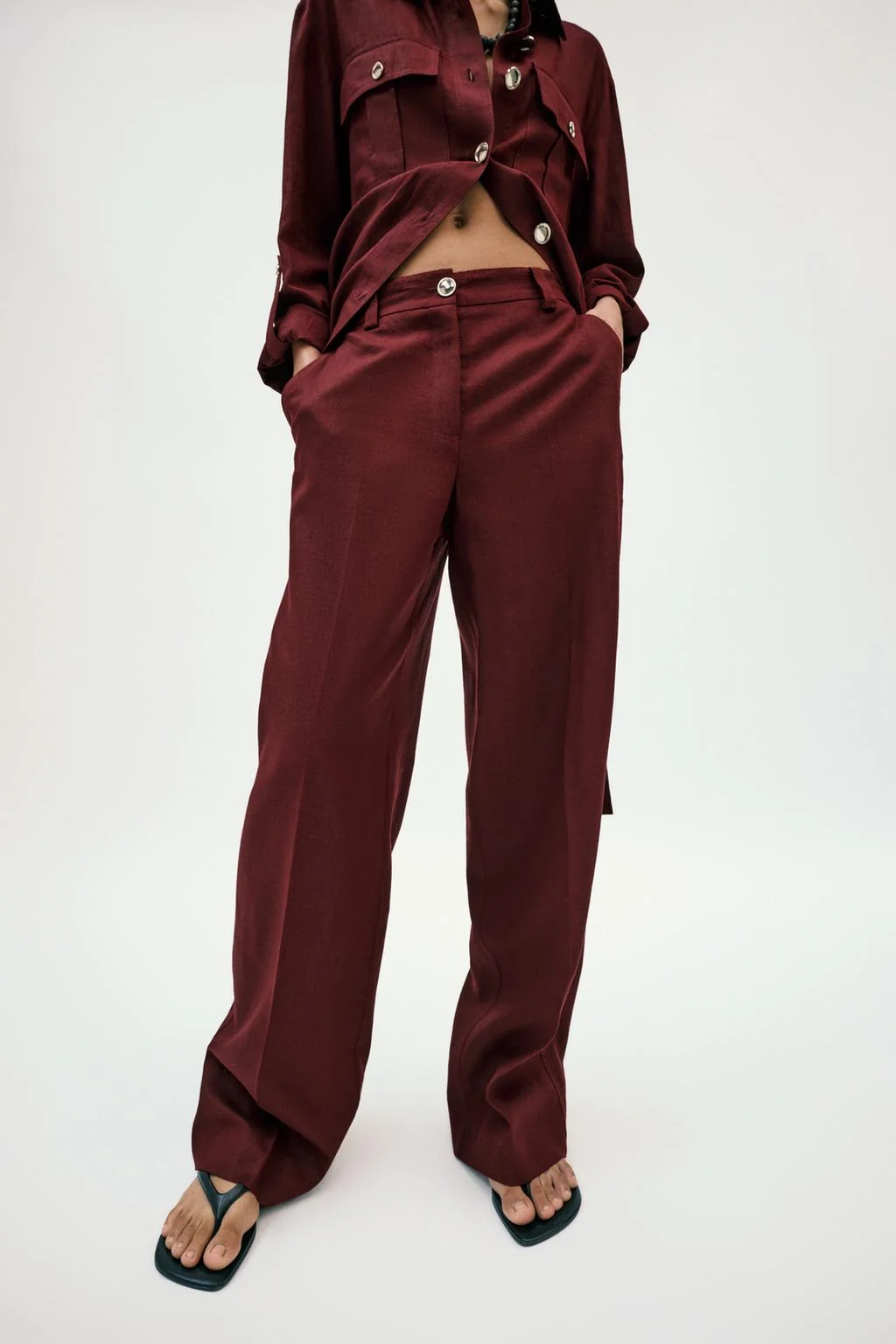 Прямые брюки из льняной смеси — Zara — ЗараТут