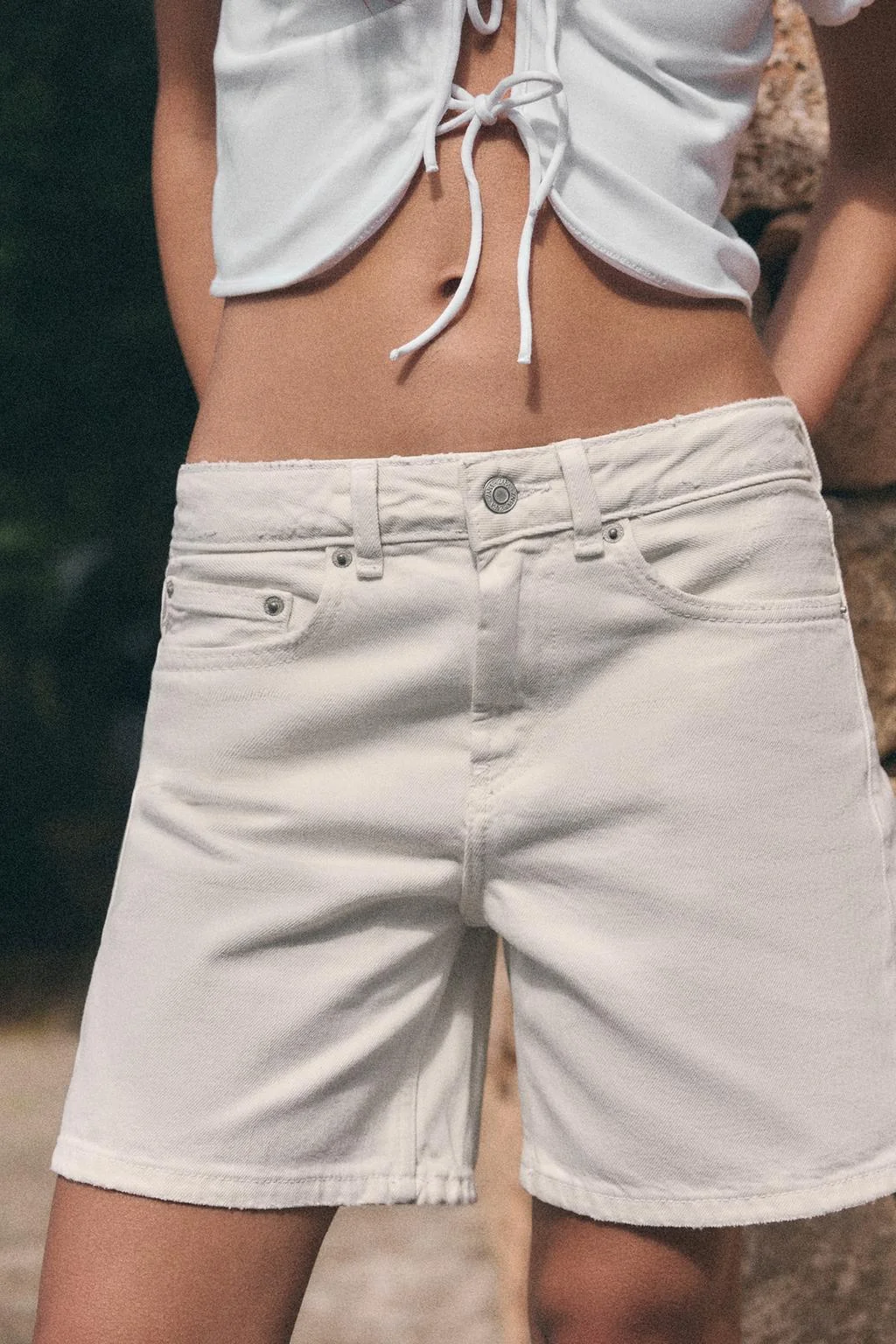 REGULAR FIT MID-WAIST DENIM BERMUDA SHORTS — Zara — ЗараТут