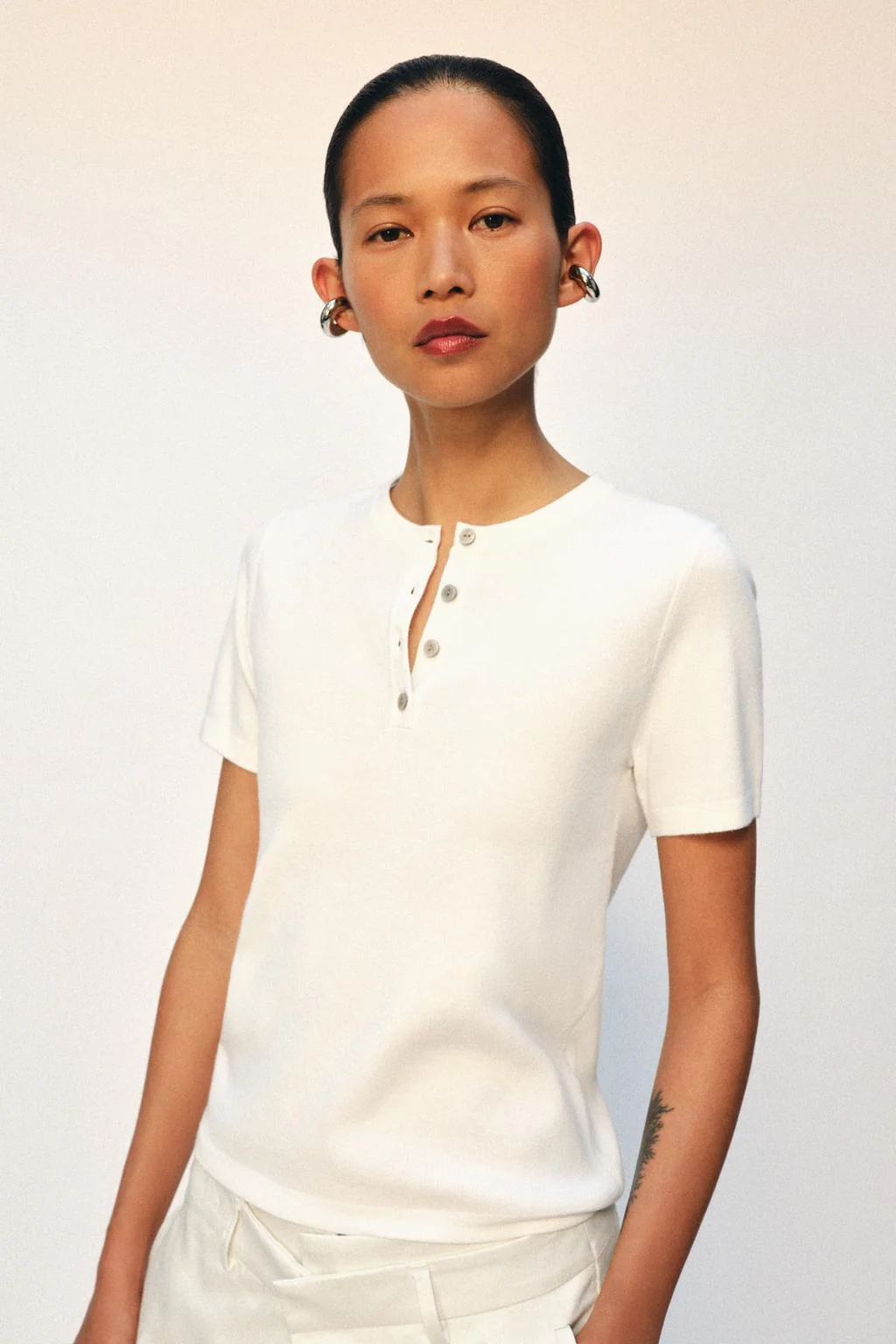 KNIT BUTTON-UP TOP