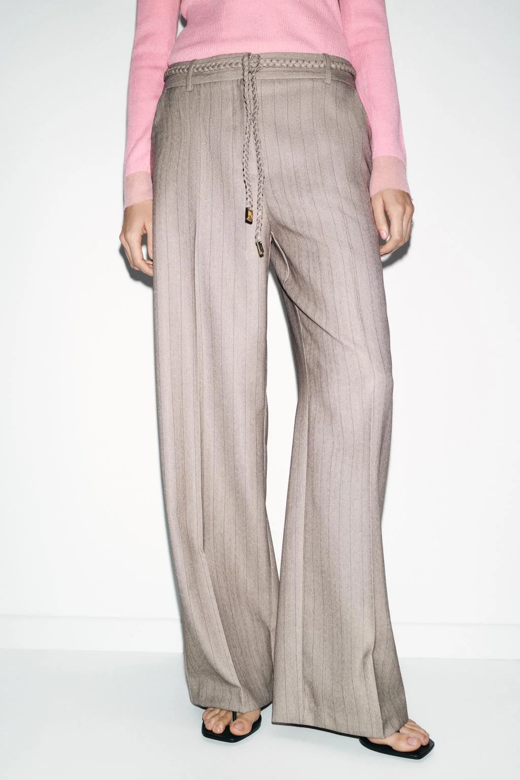 Брюки в ёлочку с плетёным поясом