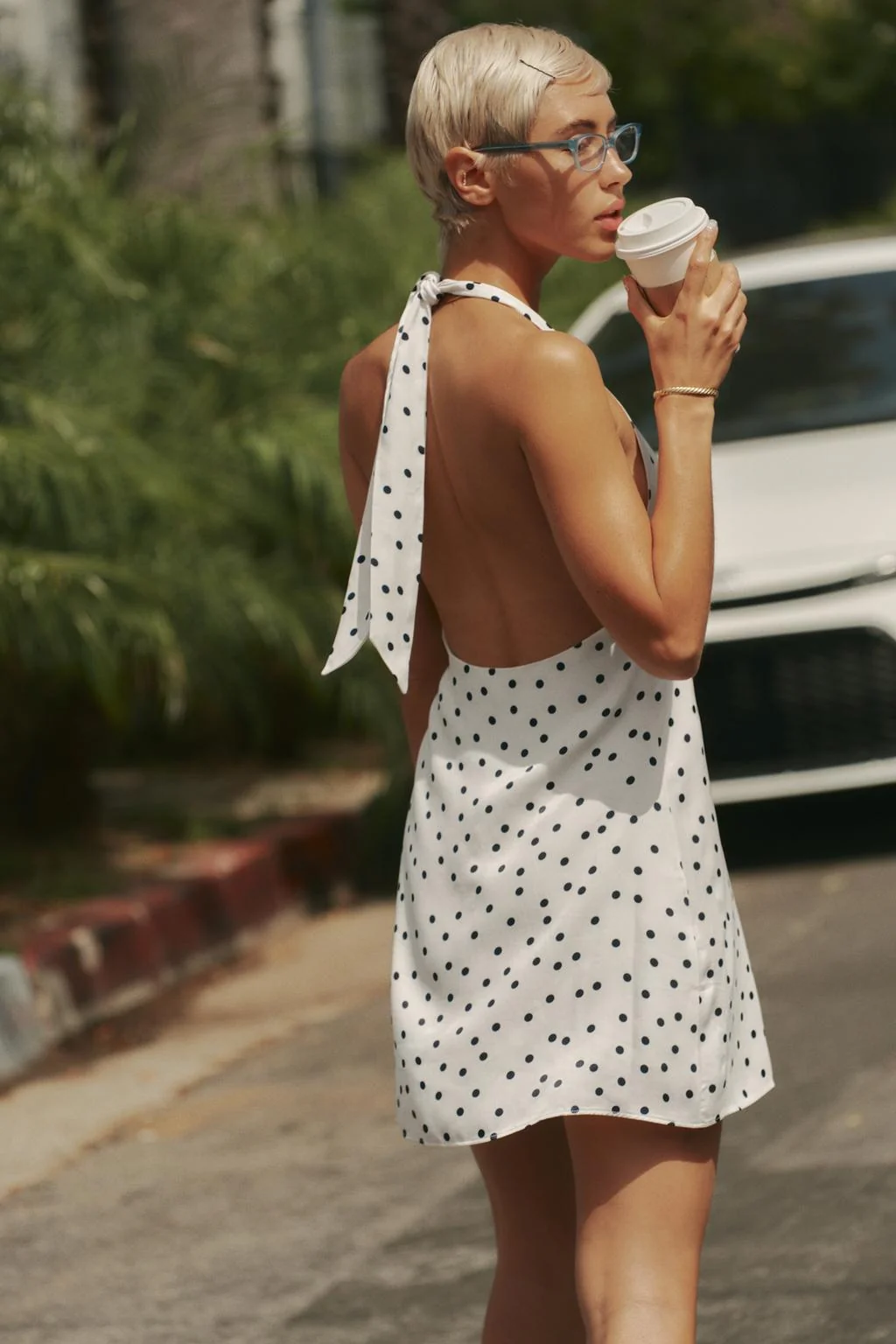 САТИНОВОЕ ПЛАТЬЕ-МИНИ С ТОЧКАМИ И ШАРФОМ