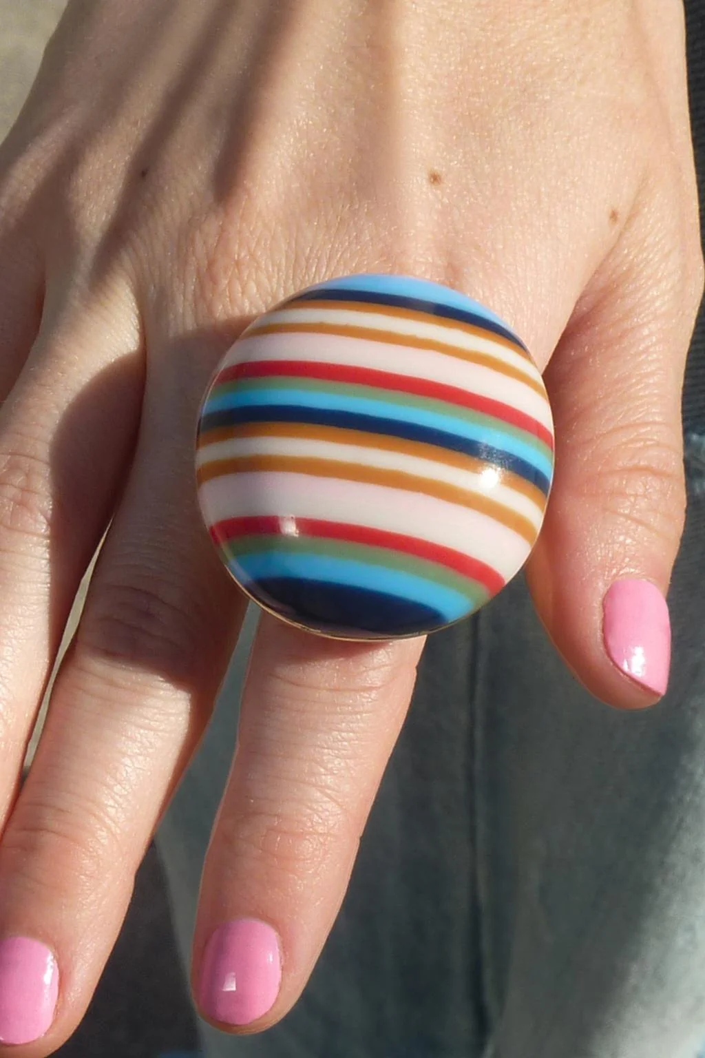 - Металлическое кольцо с овальной накладкой из резина в цвете.