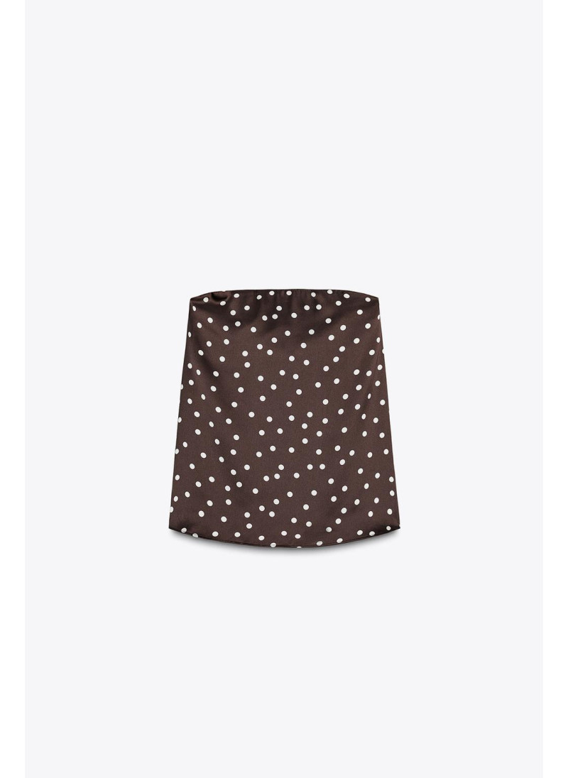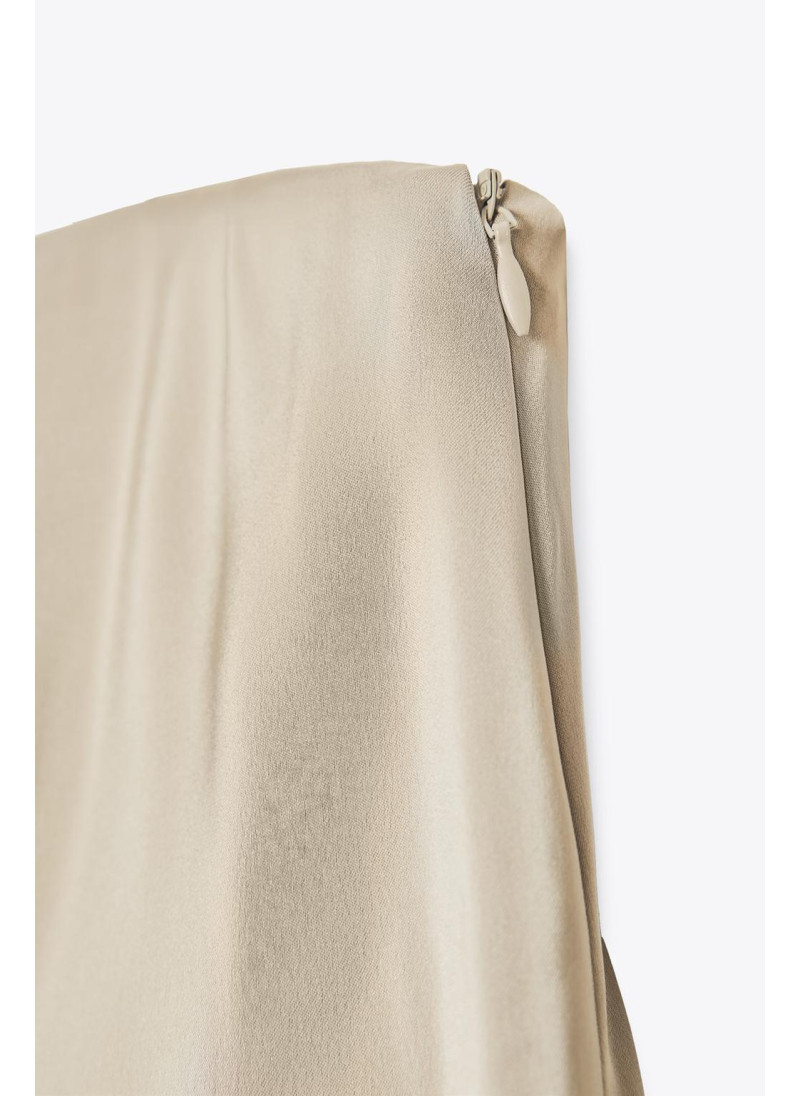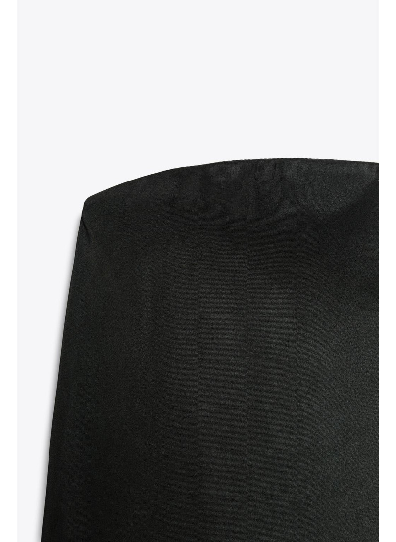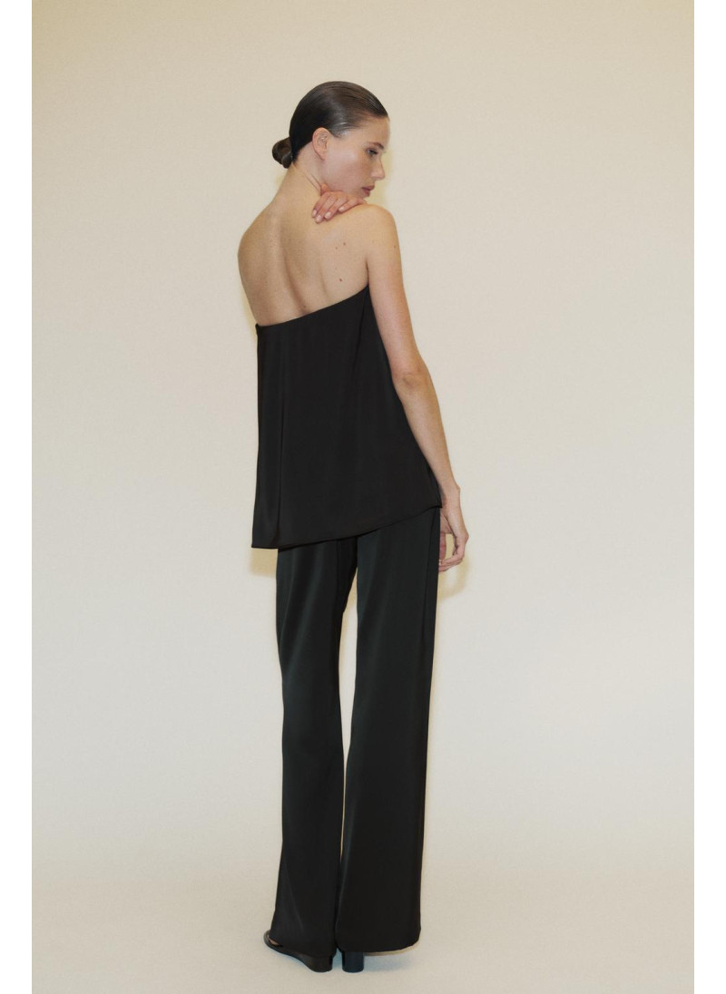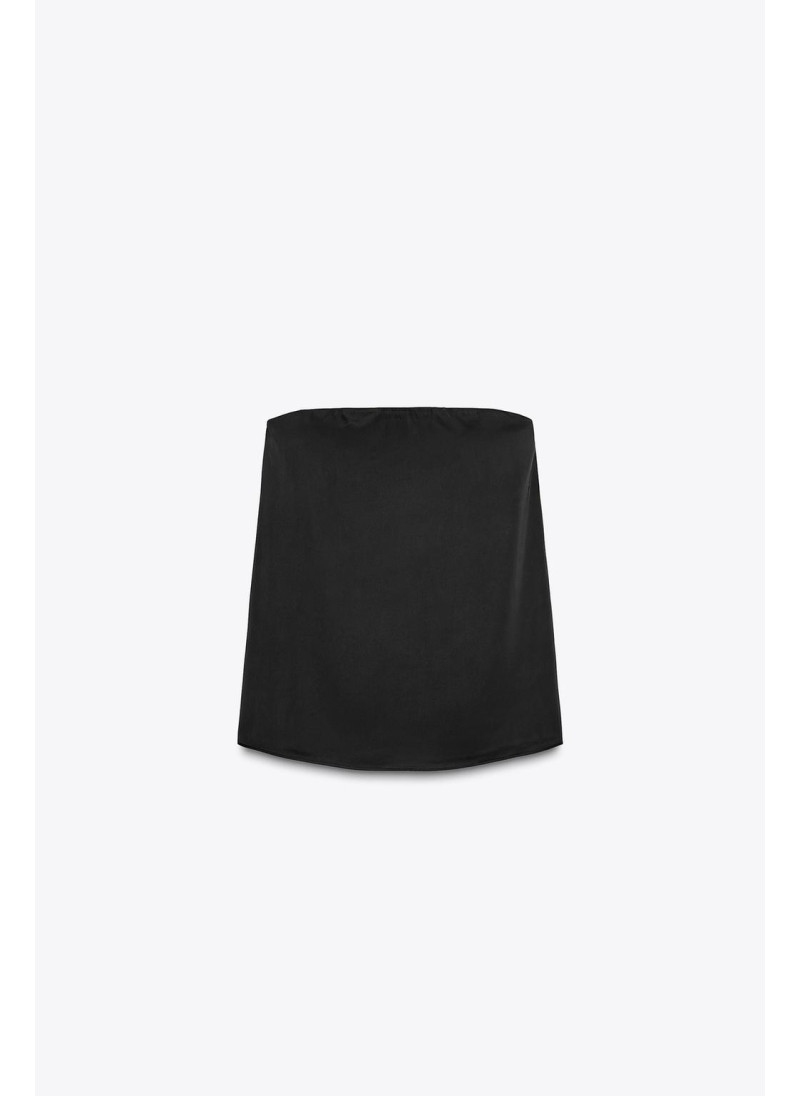 Топ изготовлен из атласной ткани. Прямой крой, открытое декольте на плечах. Внутренний бандо из той же ткани. Боковая молния, скрытая в шве...