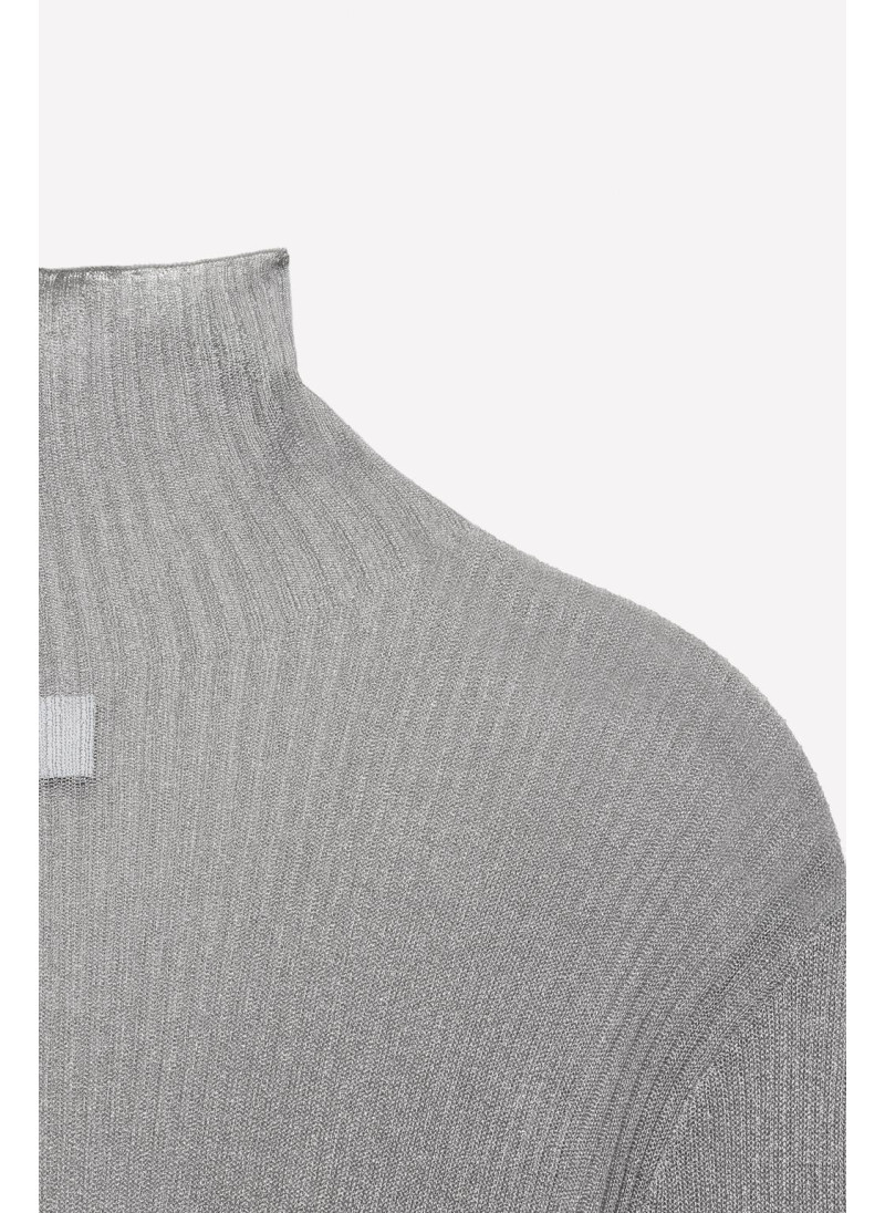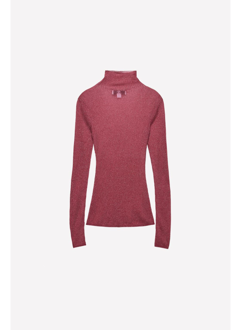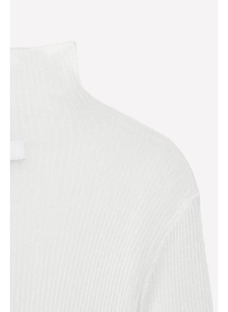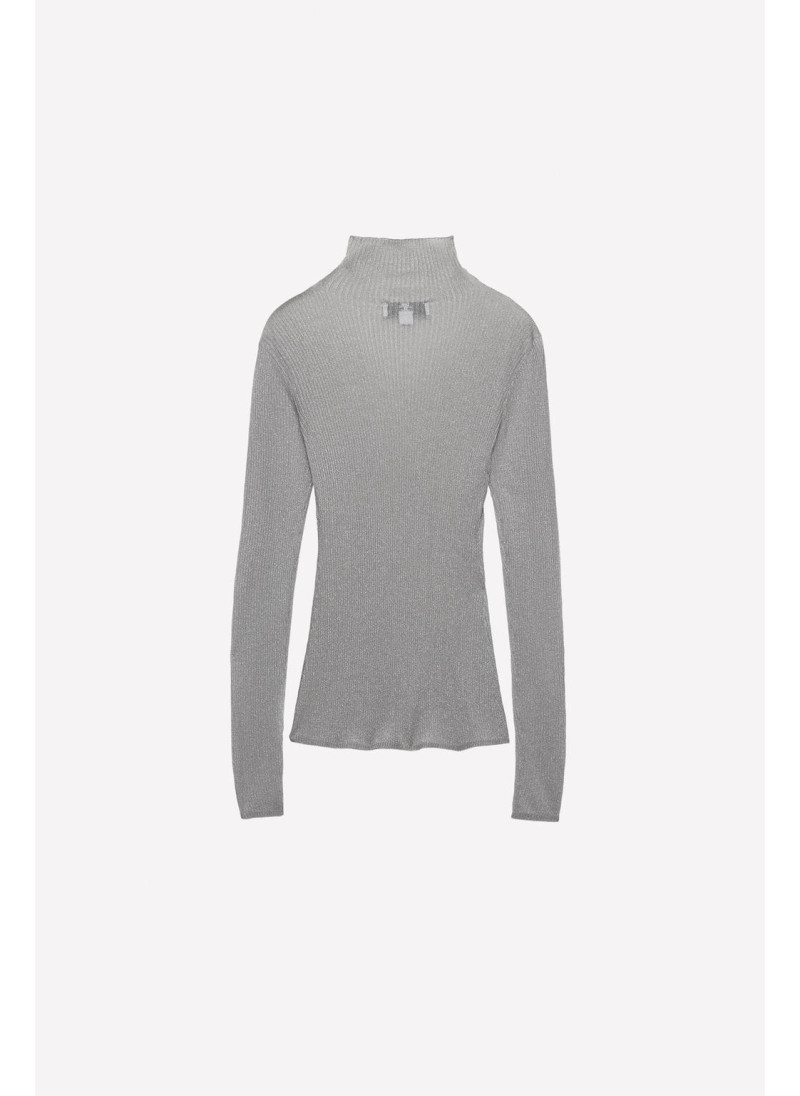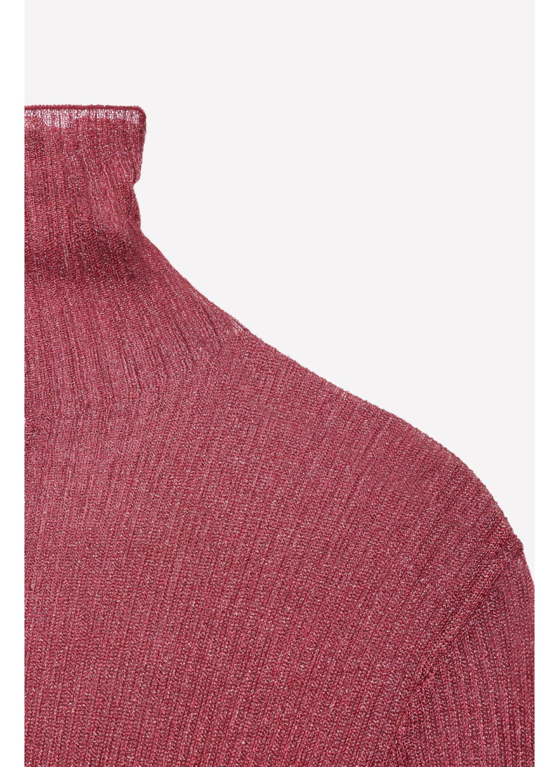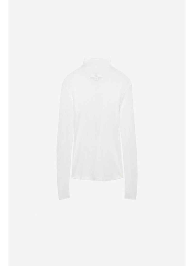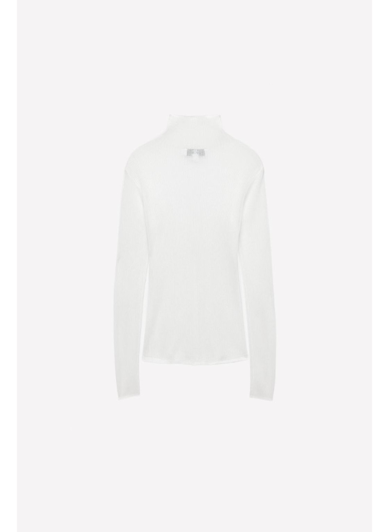 Полупрозрачный топ из вискозного микса. Высокий воротник и длинный рукав. Прямой подол.
