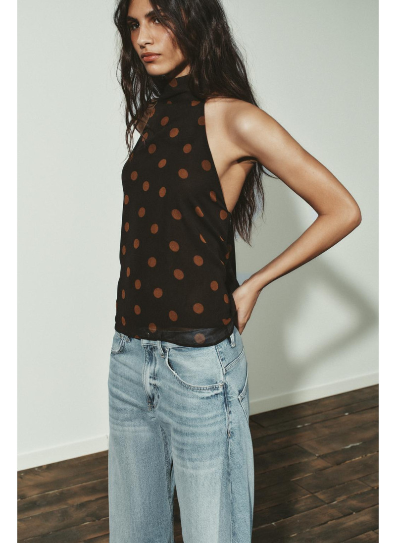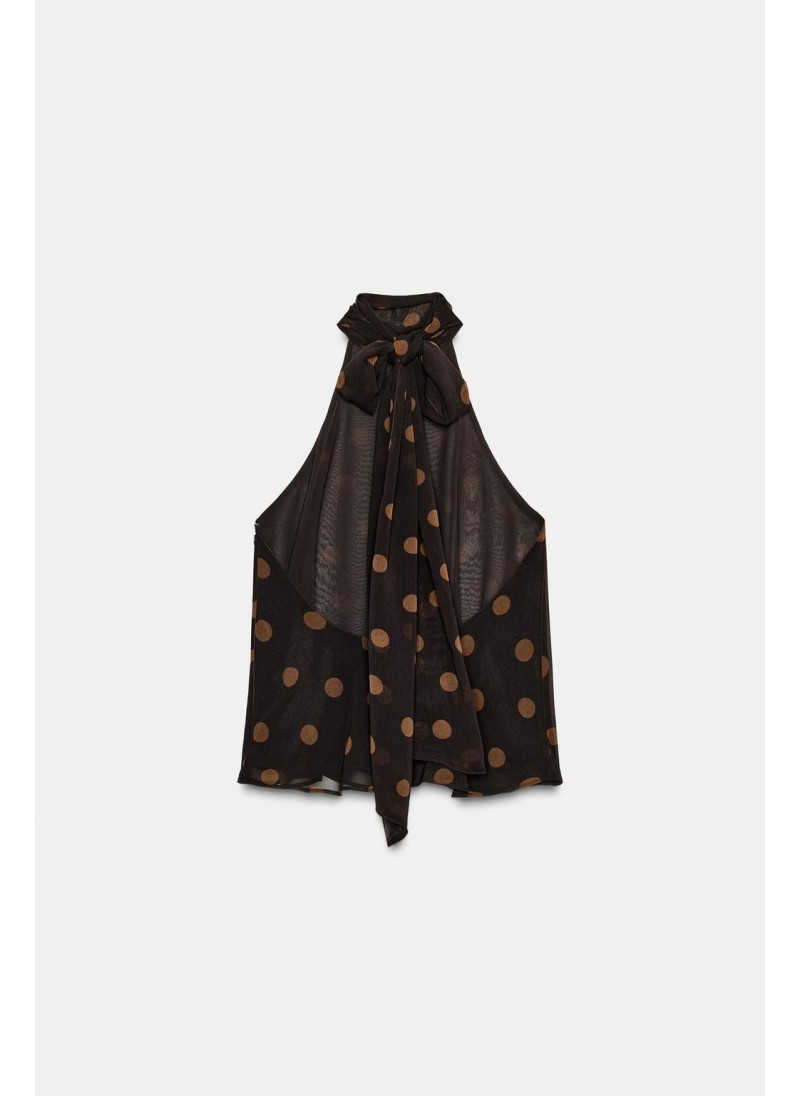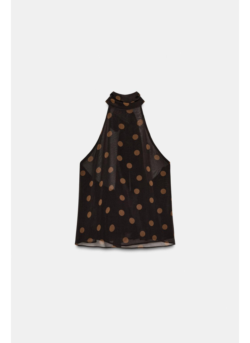ТОП ИЗ ЖОРЖЕТА С ГОРЛОВИНОЙ ХАЛТЕР В ГОРОШЕК