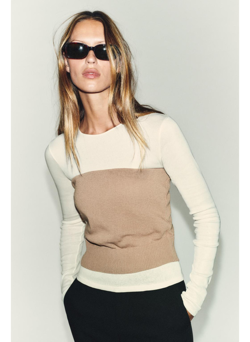 Высота модели: 177 cm SLIM FIT - КРУГЛЫЙ ВЫРЕЗ - СТАНДАРТНАЯ ДЛИНА - ДЛИННЫЕ РУКАВА Футболка из смесового хлопка. Круглый вырез, длинные рукава. Контрастная вставка в виде корсета...