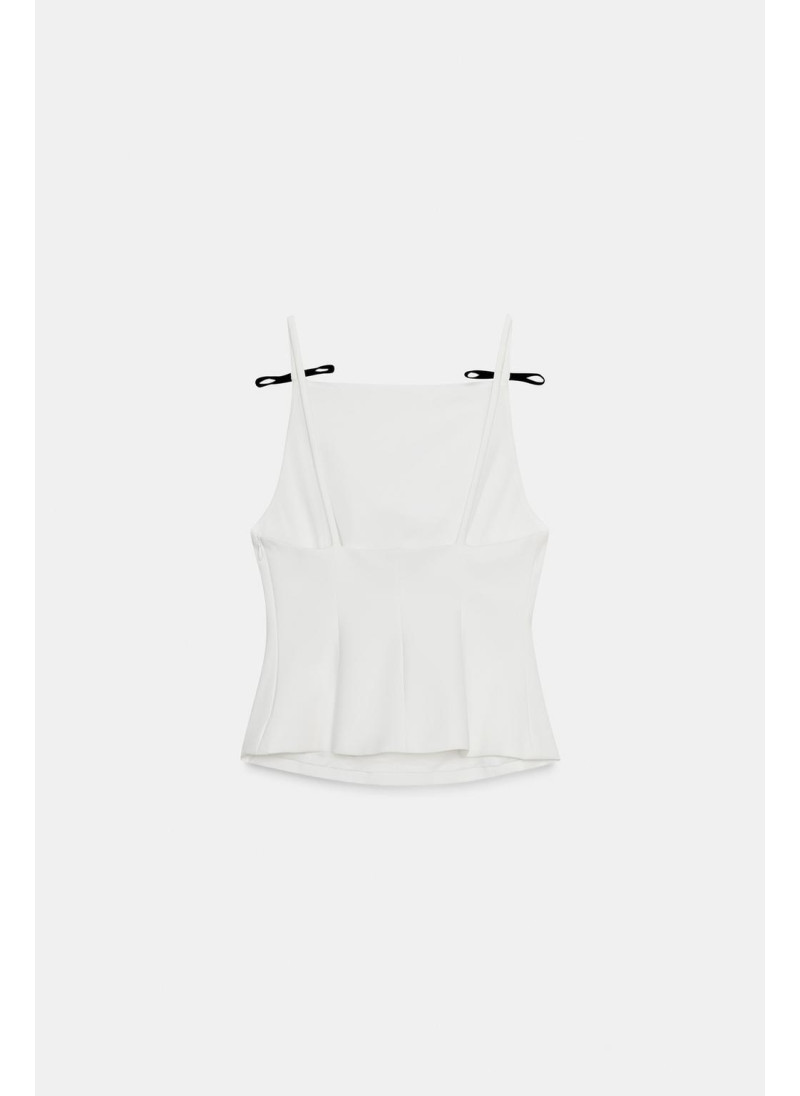 Облегающий топ с прямым вырезом и тонкими бретельками с аппликациями в виде бантов. Имеет подкладку. Застежка на молнию по боковому шву...
