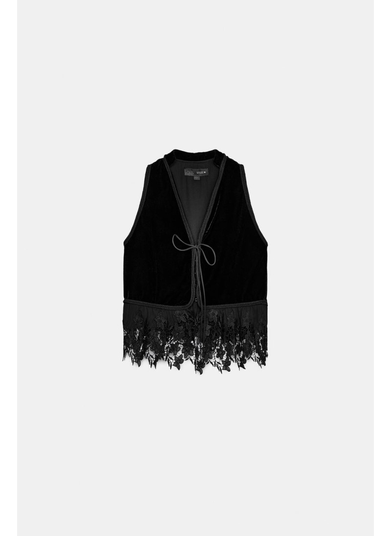 Жилет из комбинированного бархата Zw Collection Limited Edition. Цвет: черный. Артикул: Black | 9000/158/800..