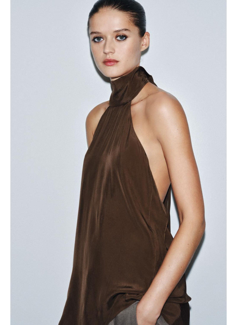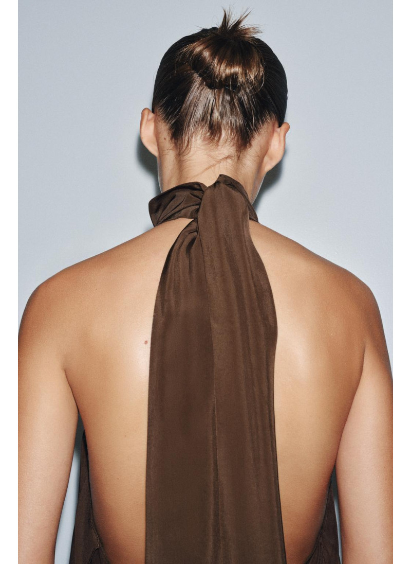 Коллекция ZARA WOMAN. Топ с галстуком на шее, изготовлен из вискозы. Открытые плечи. Асимметричный подол. Застегивается на спине.