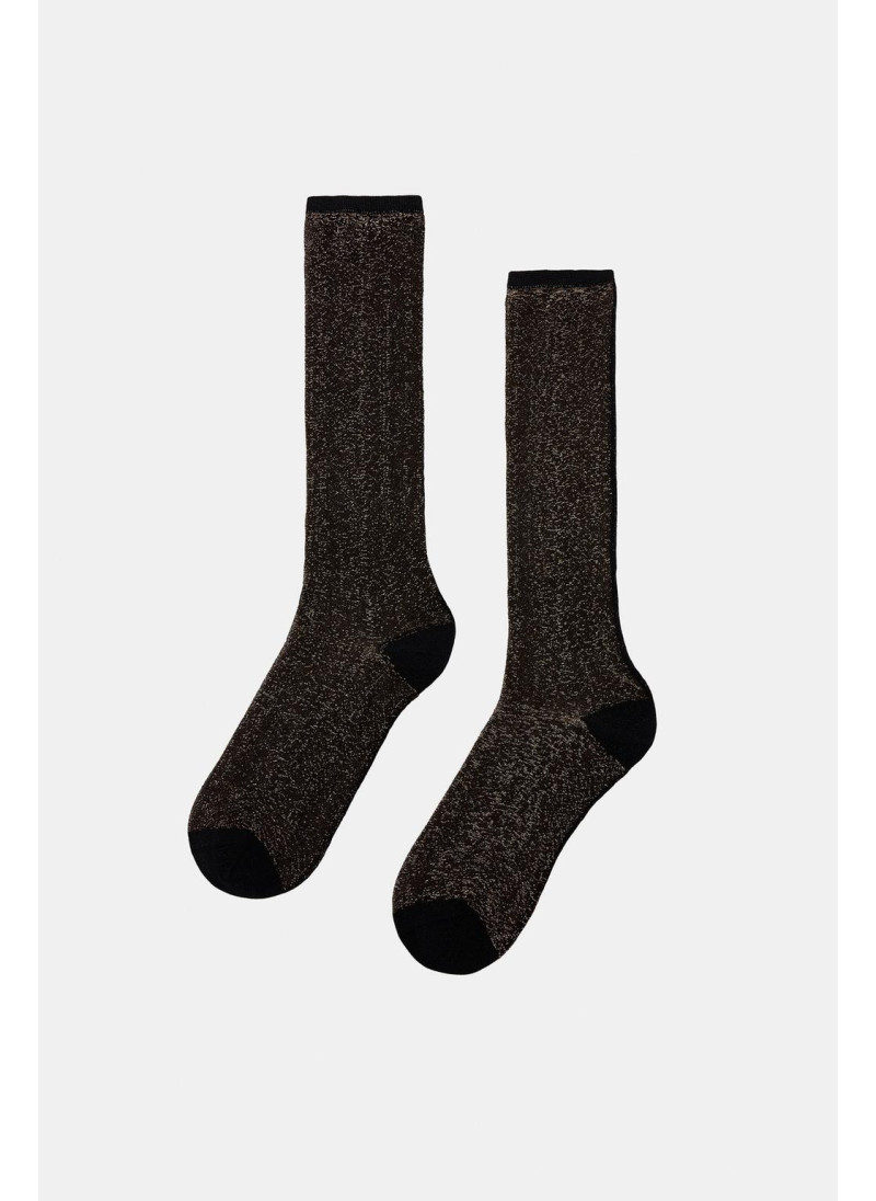 Носки из полупрозрачной ткани с контрастной блестящей нитью. Эластичные края.