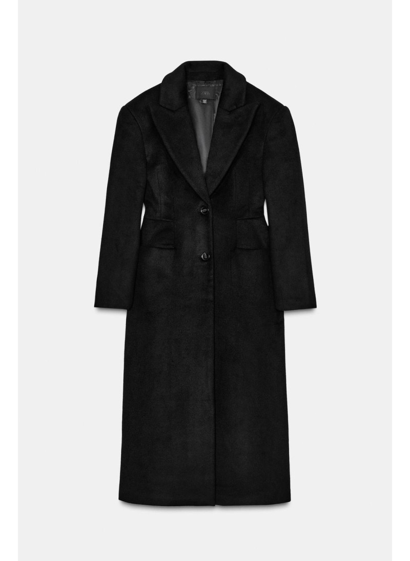 Длинное пальто из шерстяно-шелкового смесового материала. Оверсайз-модель с лацканами, длинным рукавом, карманами в боковых швах и застежкой на пуговицы спереди.