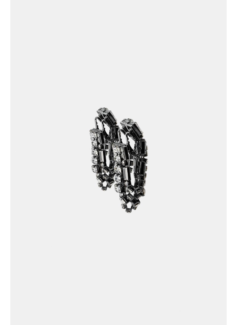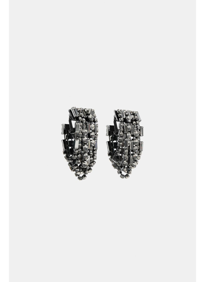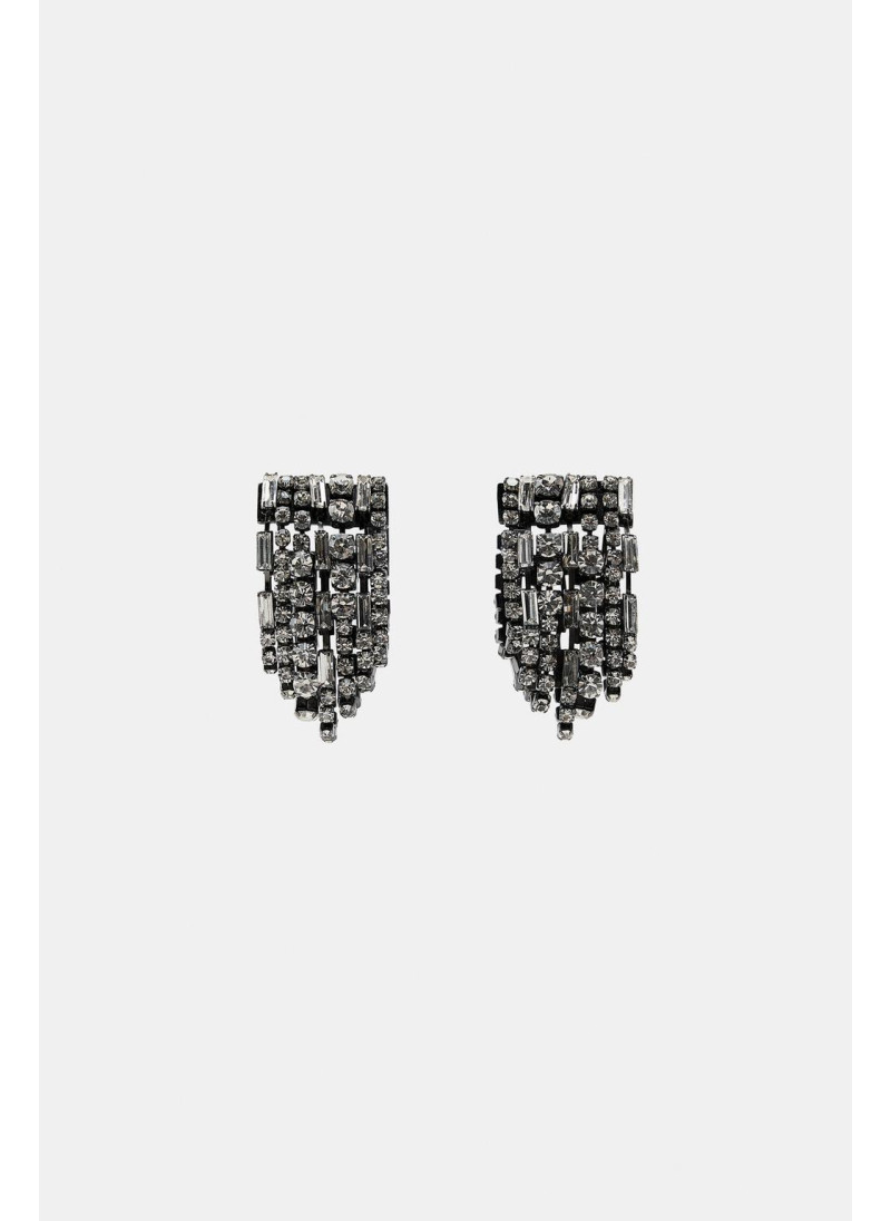 Металлические серьги с несколькими контрастными накладными драгоценными камнями. Застежка на клипсу...