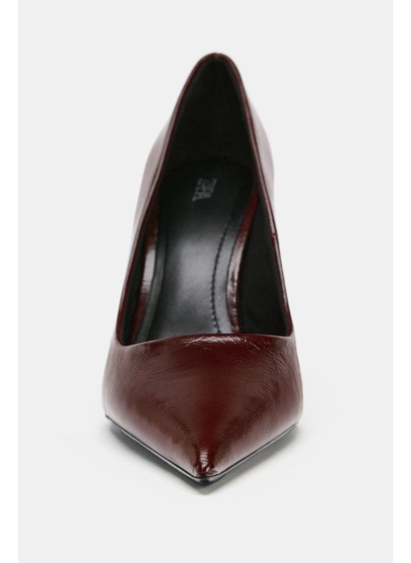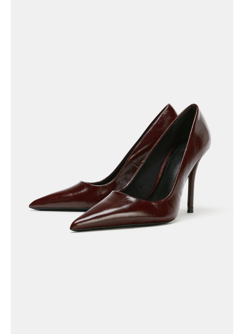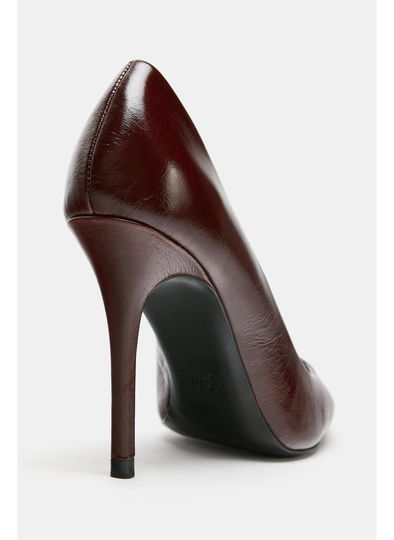 Кожаные туфли на каблуке. Круглый вырез. Высокий тонкий каблук. Острый носок. Высота каблука: 10,5 см..