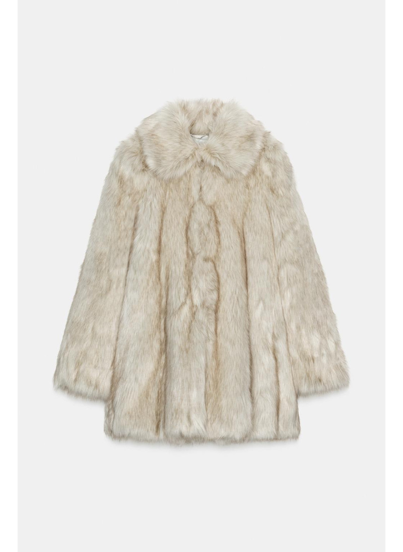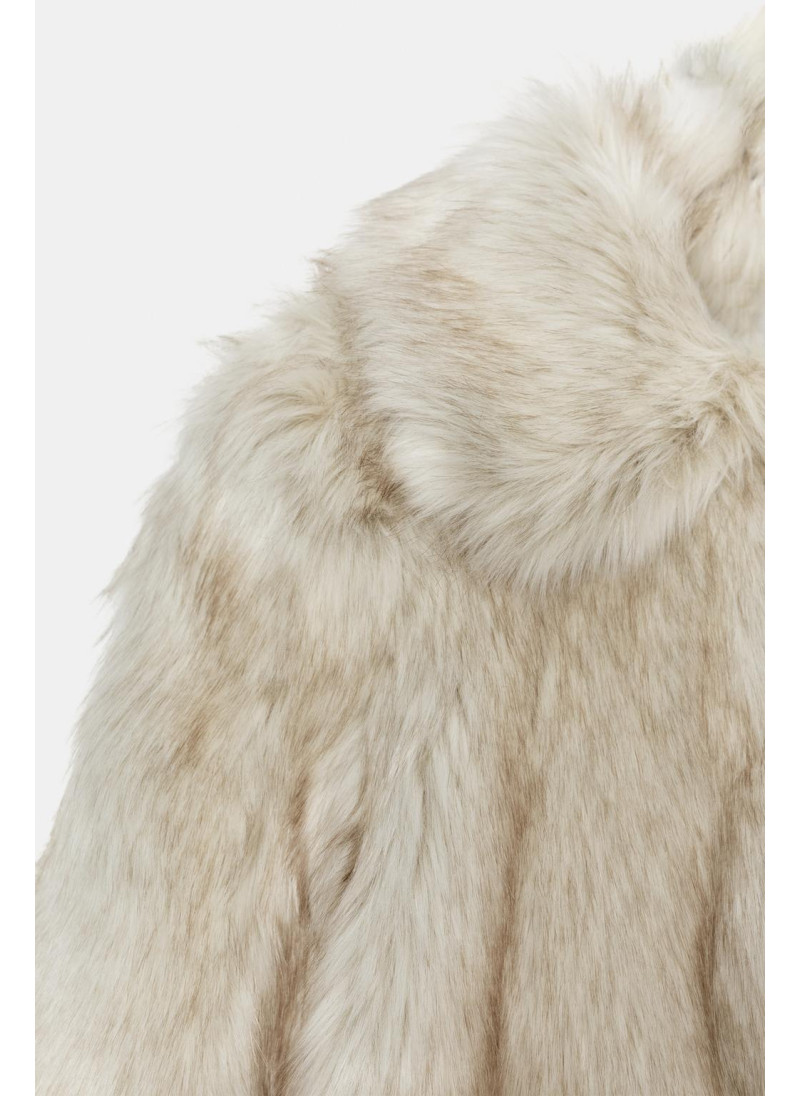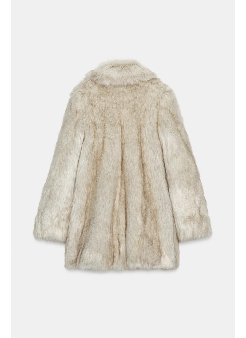 Пальто с лацканом и длинными рукавами с наполнителями для плеч. Передние карманы. Внутренняя подкладка. Застежка спереди на покрытые металлические крючки.