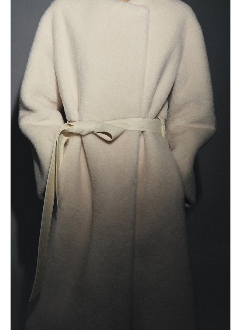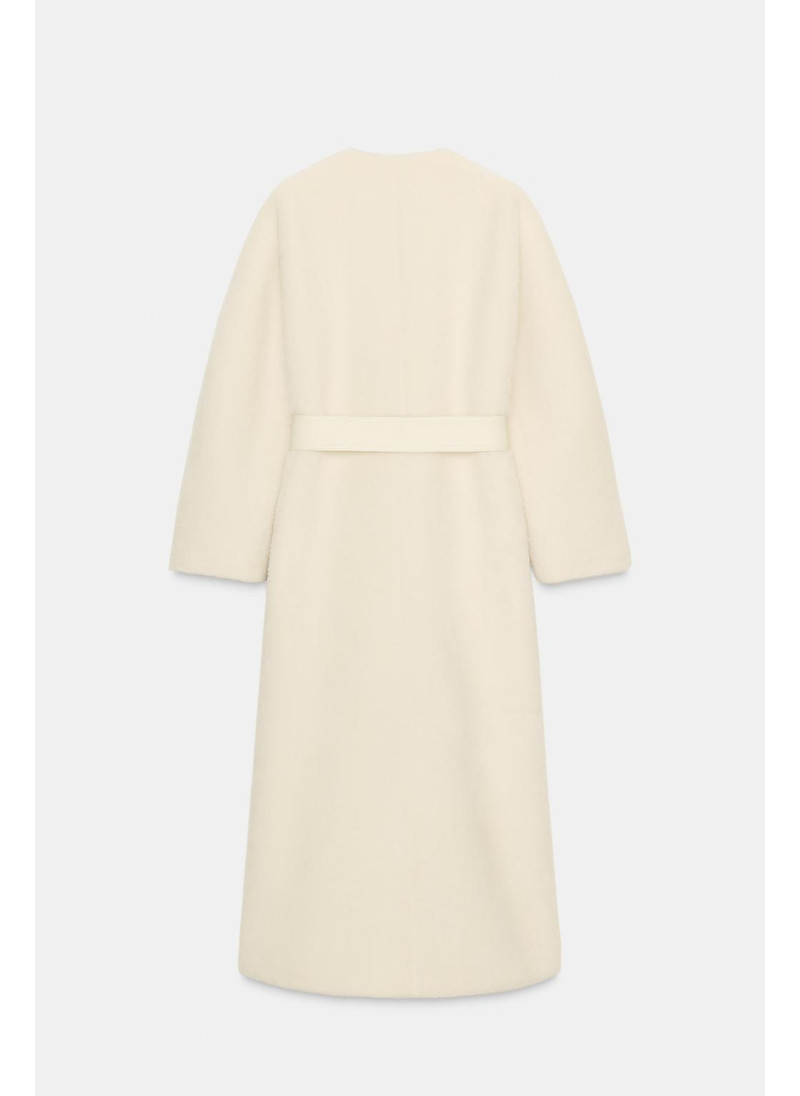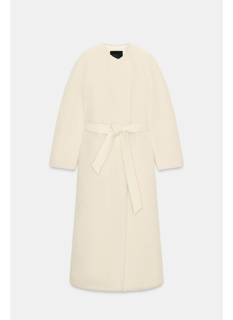 ZARA WOMAN COLLECTION Длинное пальто из искусственного меха. Круглый вырез, длинные рукава. Скрытые боковые карманы в швах. Регулируемый пояс на завязках. Прямой подол...