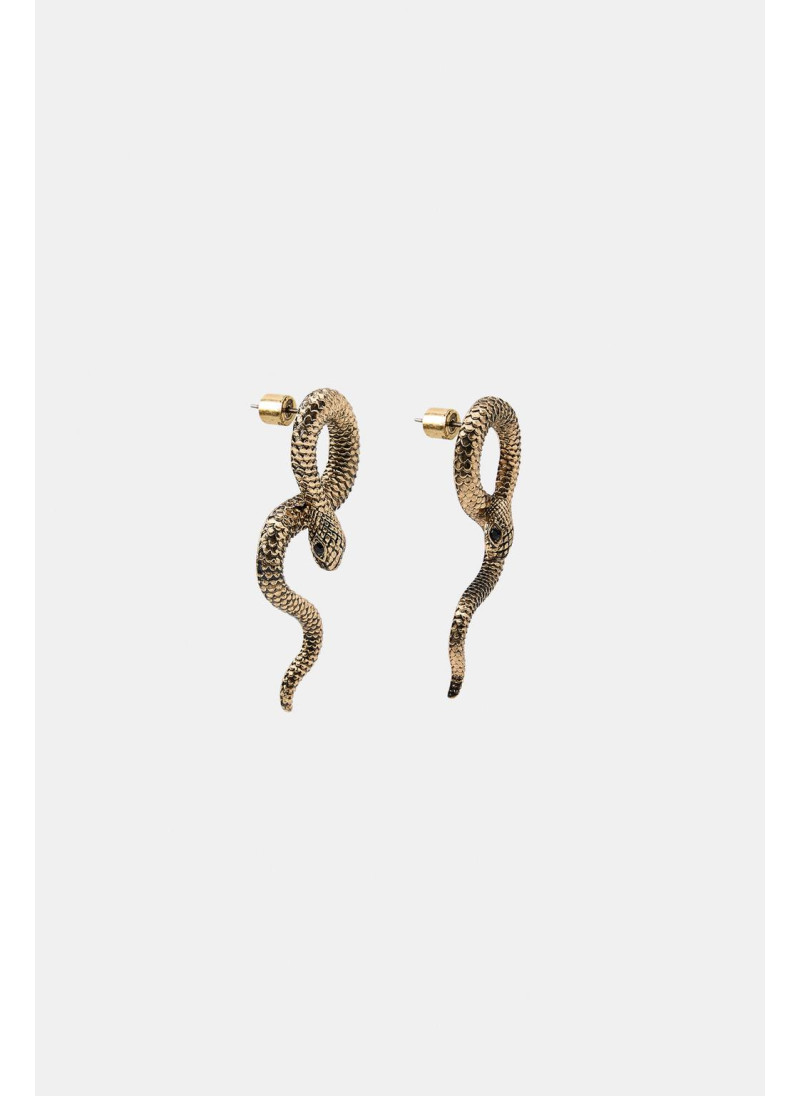 Кованые металлические серьги в виде змейки. Контрастные блестящие детали. Застежка-пусета...