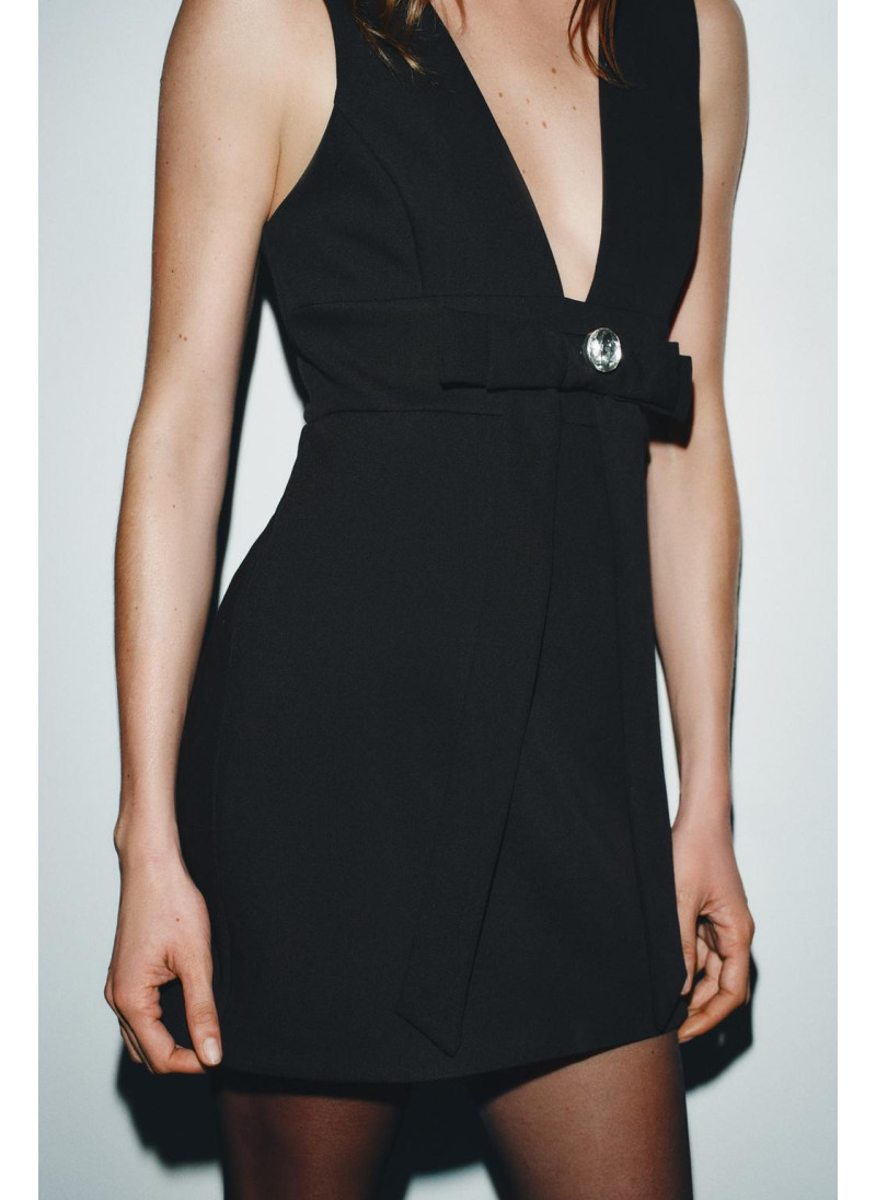 КОРОТКОЕ ПЛАТЬЕ С БАНТОМ И УКРАШЕНИЕМ
