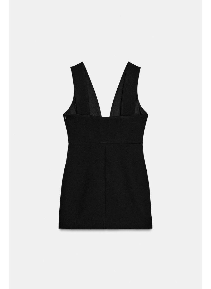 Высота модели: 0 cm Короткое платье с глубоким V-образным вырезом и широкими бретелями. Декоративный бант на груди и контрастное украшение. Подкладка в тон. Боковая застежка-молния...