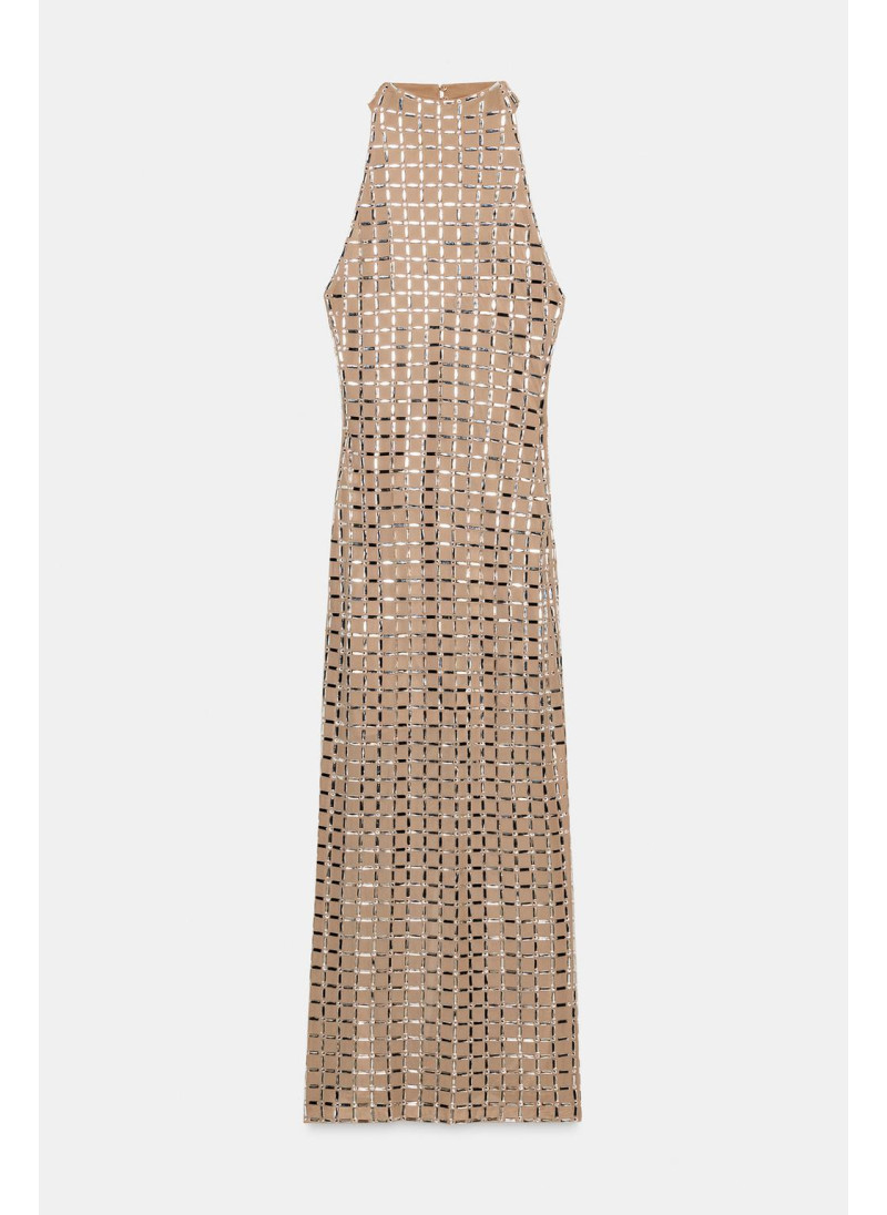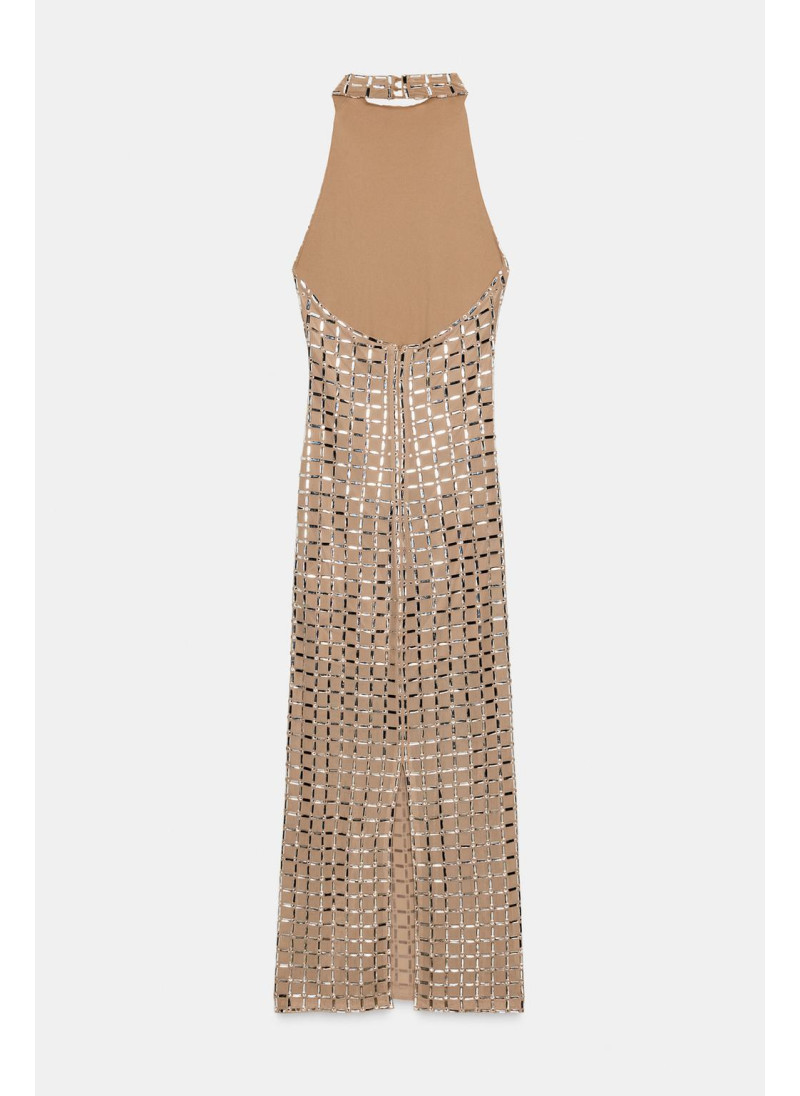 ПЛАТЬЕ МИДИ С ГОРЛОВИНОЙ ХАЛТЕР ИЗ СЕТКИ С БЛЕСТКАМИ