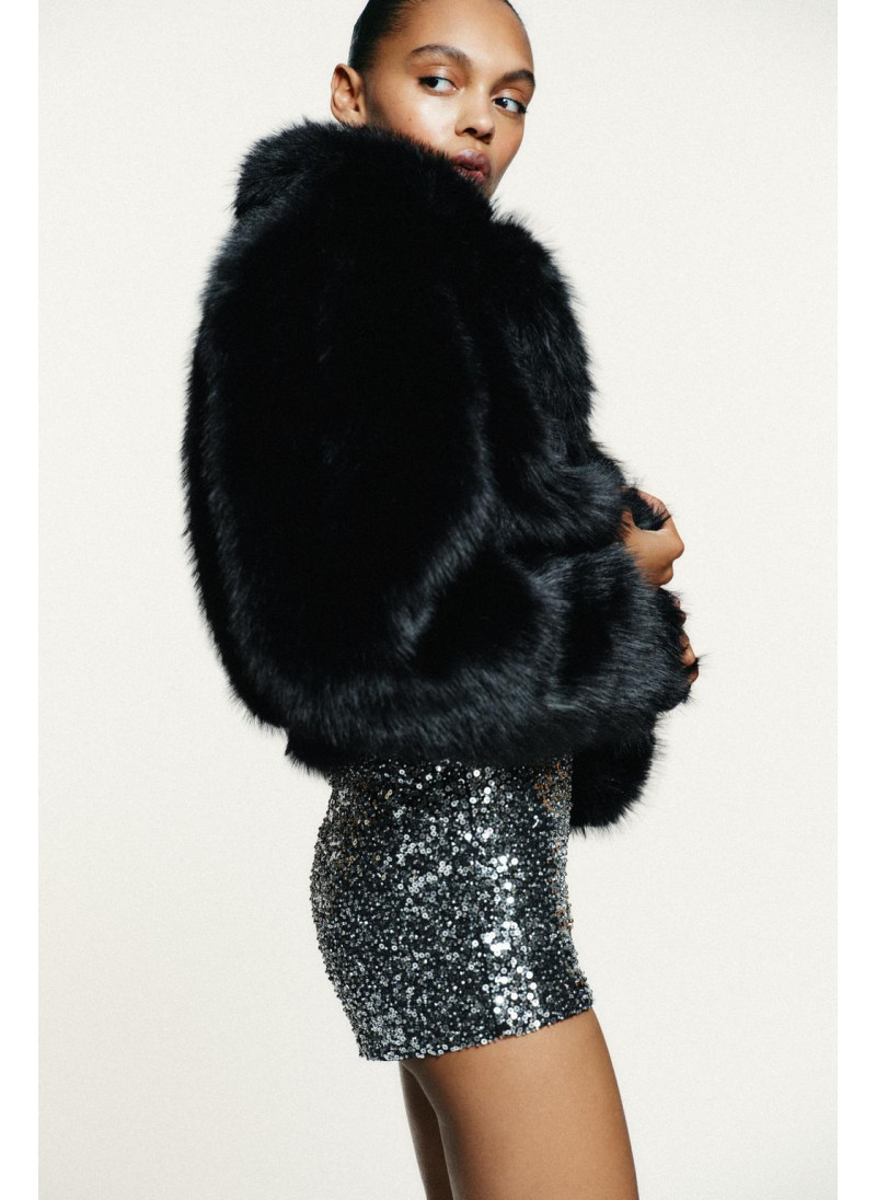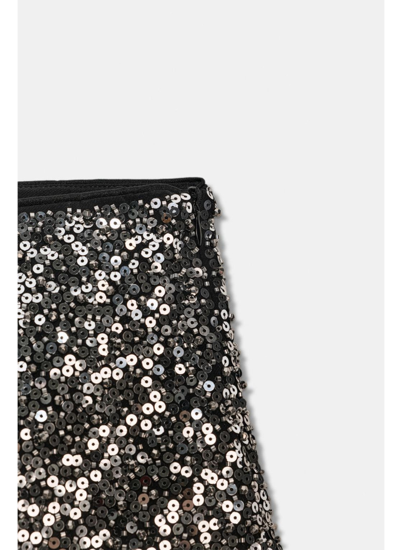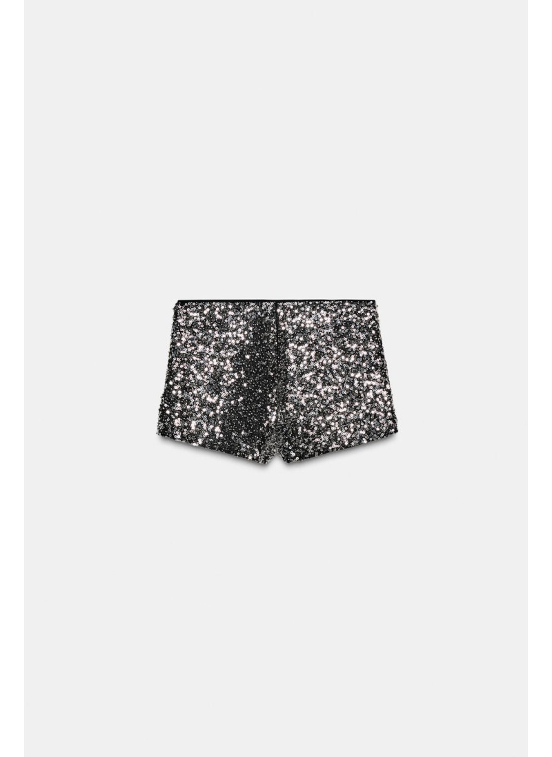 Мини-шорты с высокой посадкой. Контрастные пайетки. Потайная застежка-молния сбоку...