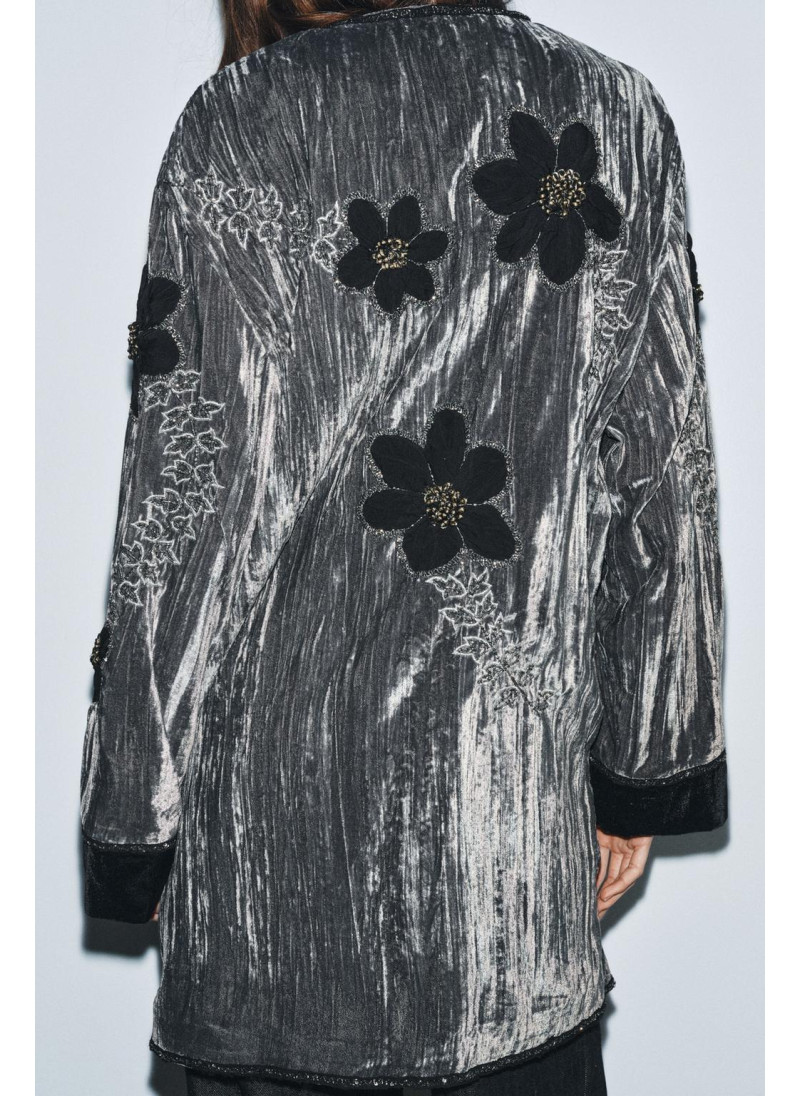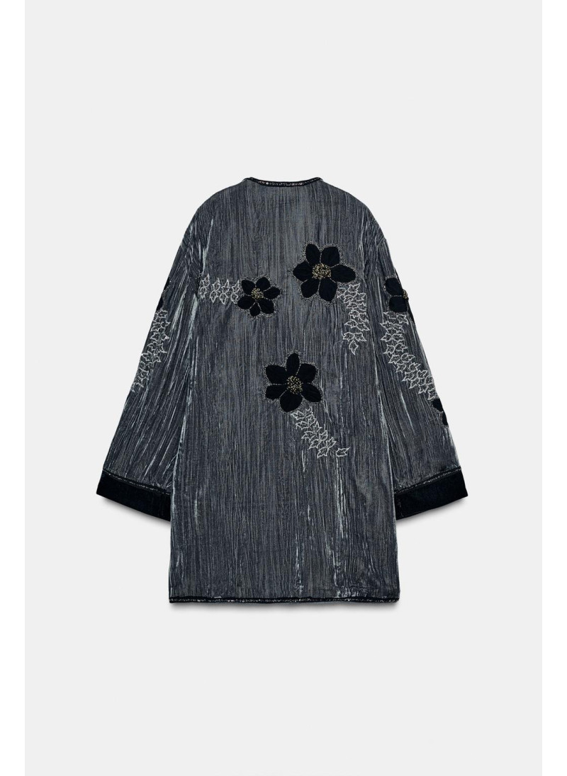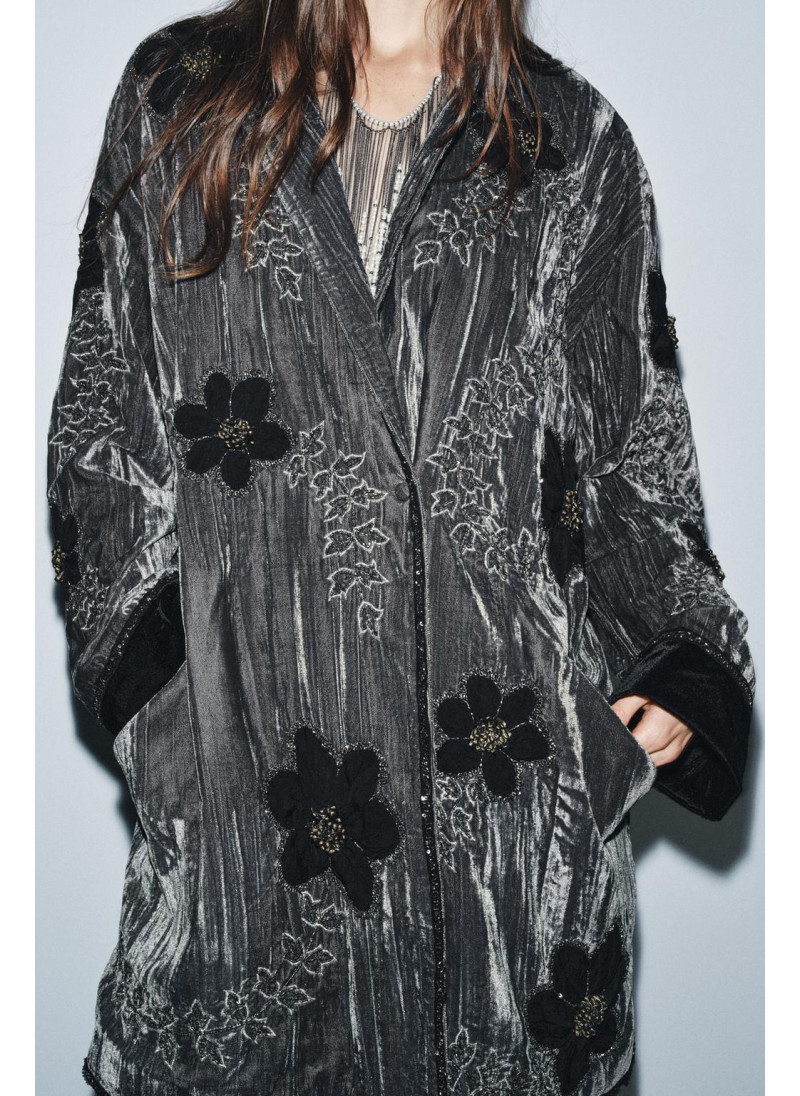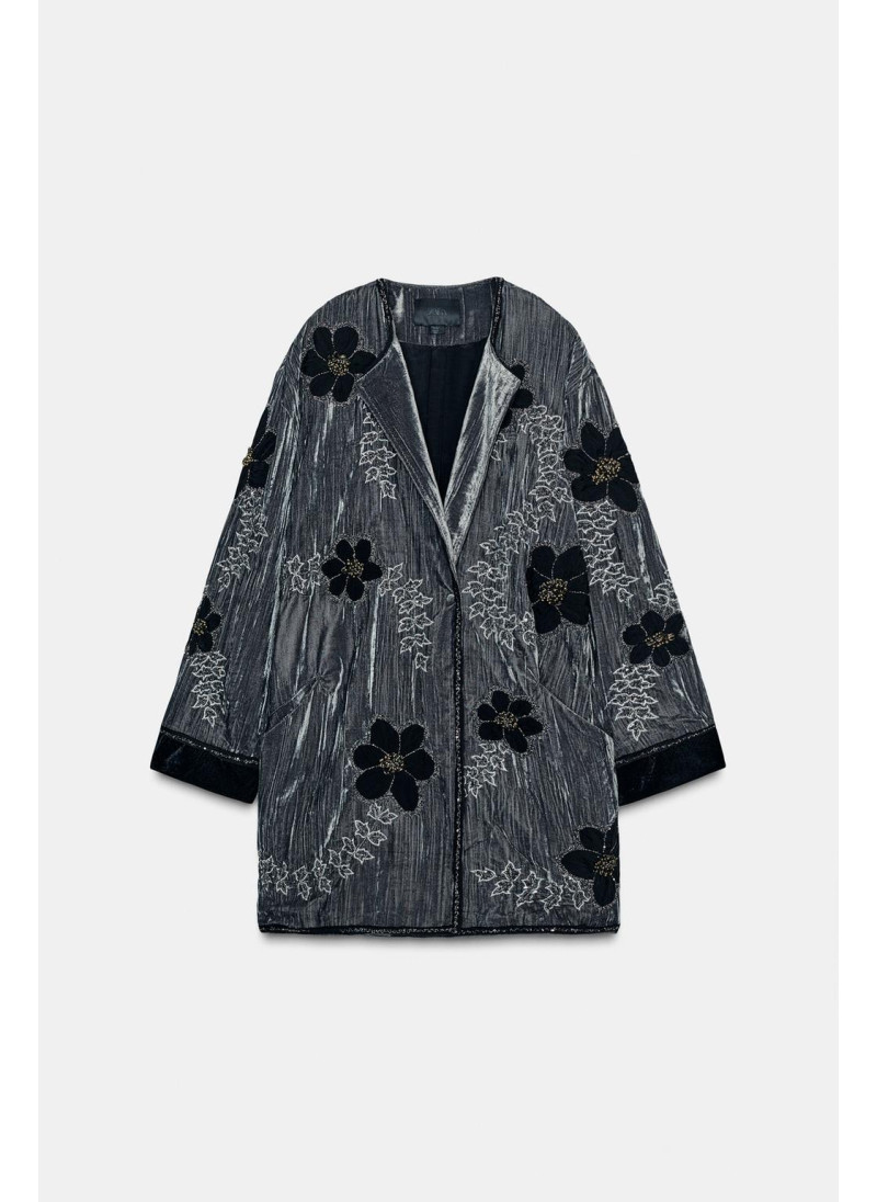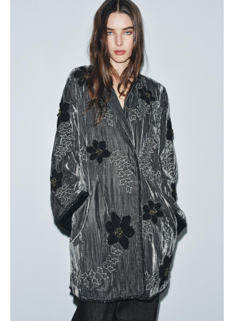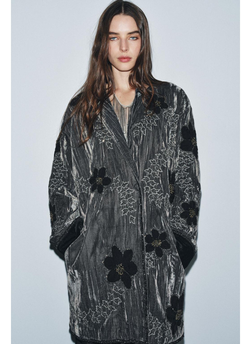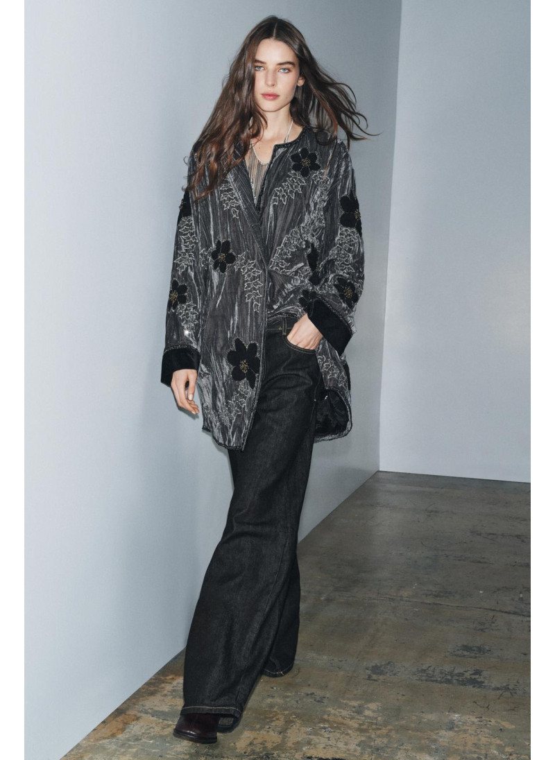 ZARA WOMAN COLLECTION Кино из бархатной ткани. Круглый вырез и длинные рукава. Вышивка металлизированной нитью. Передние карманы. Застежка спереди...