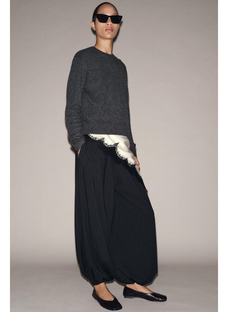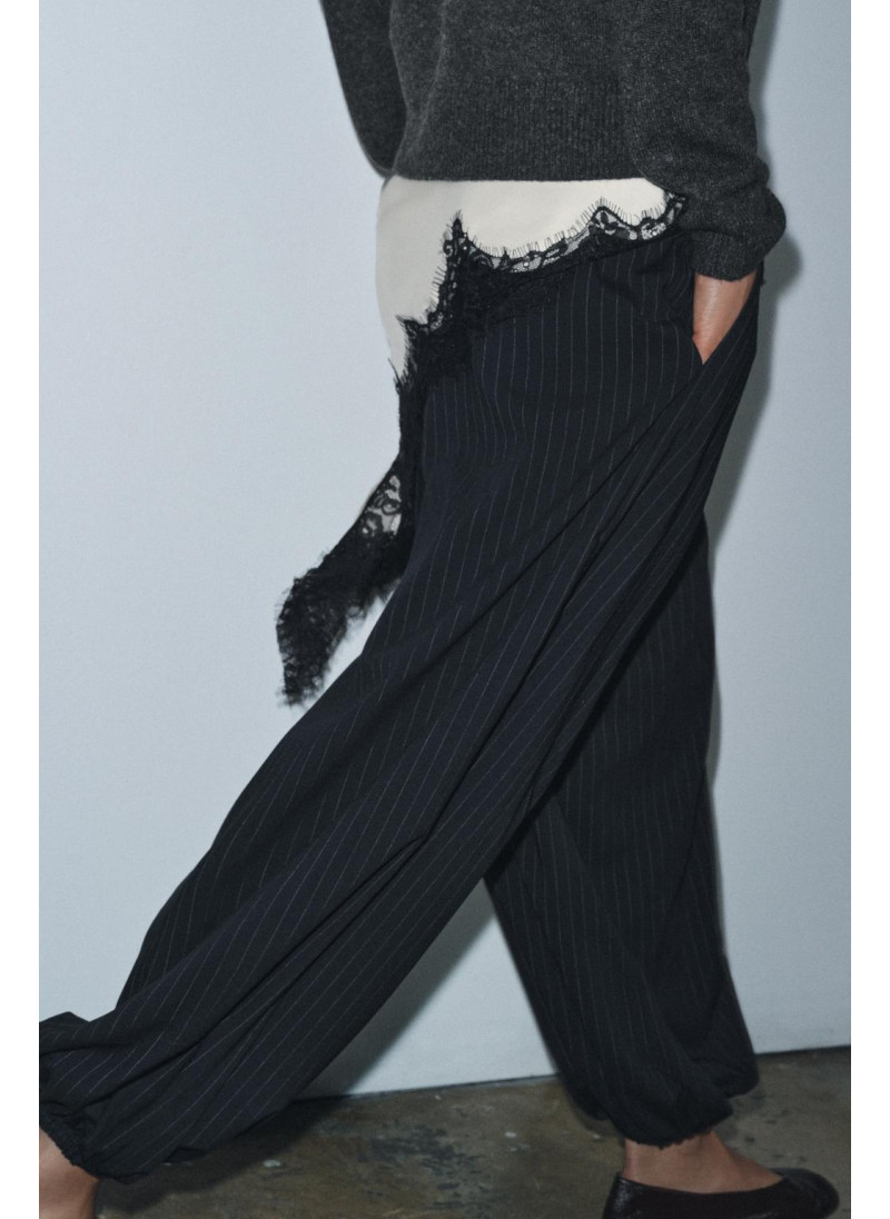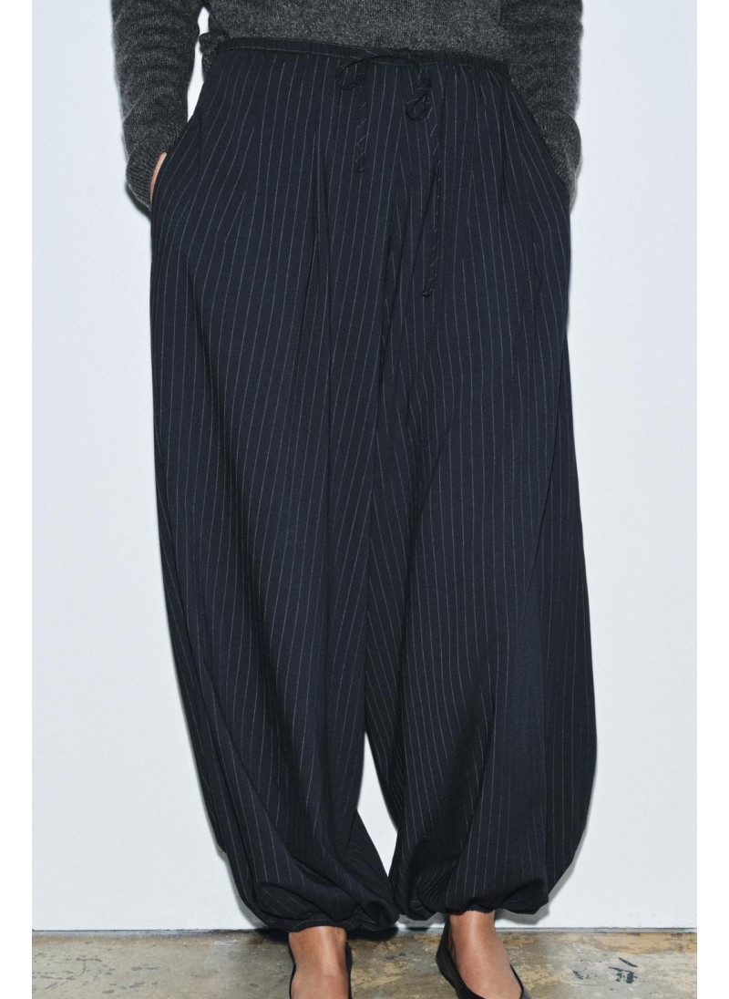 ZARA WOMAN COLLECTION Брюки со средней посадкой и эластичным поясом, регулируемым шнурками. Тонкая полоска. Объемный низ на резинке...