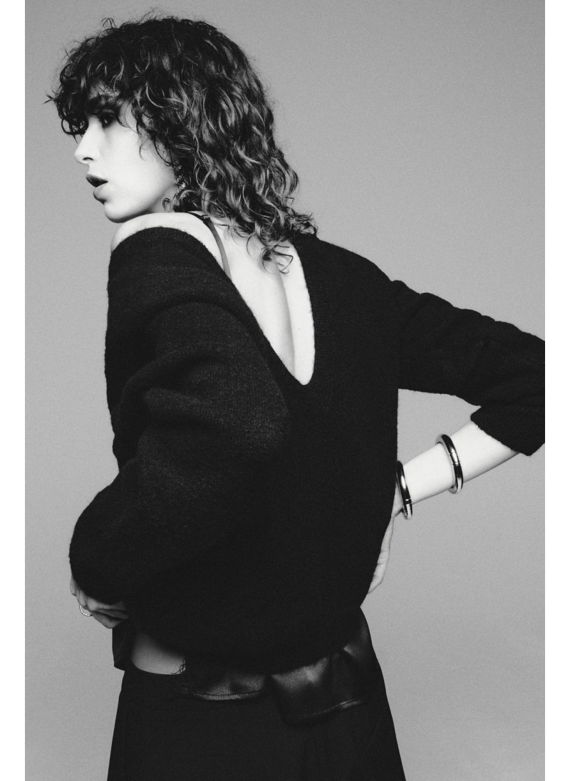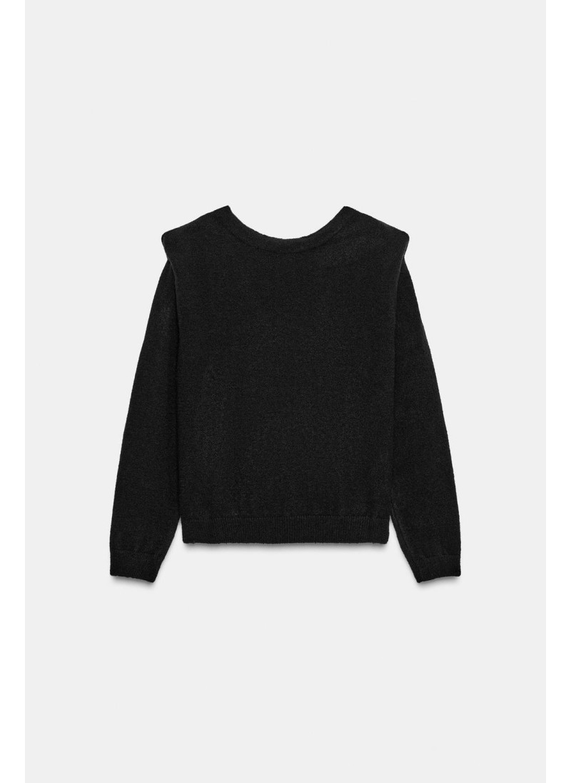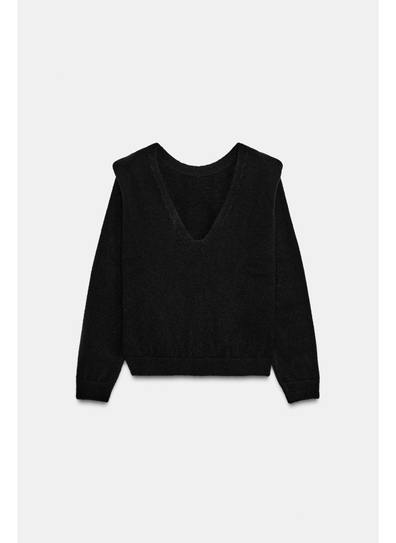ДЖЕМПЕР ВЯЗАНЫЙ С V-ОБРАЗНЫМ ВЫРЕЗОМ СЗАДИ И ПОДПЛЕЧНИКАМИ
