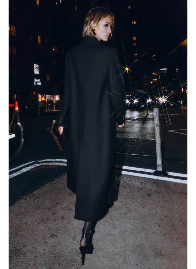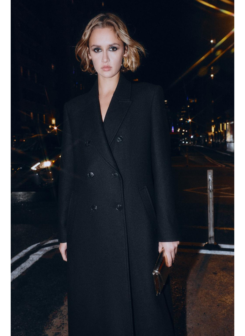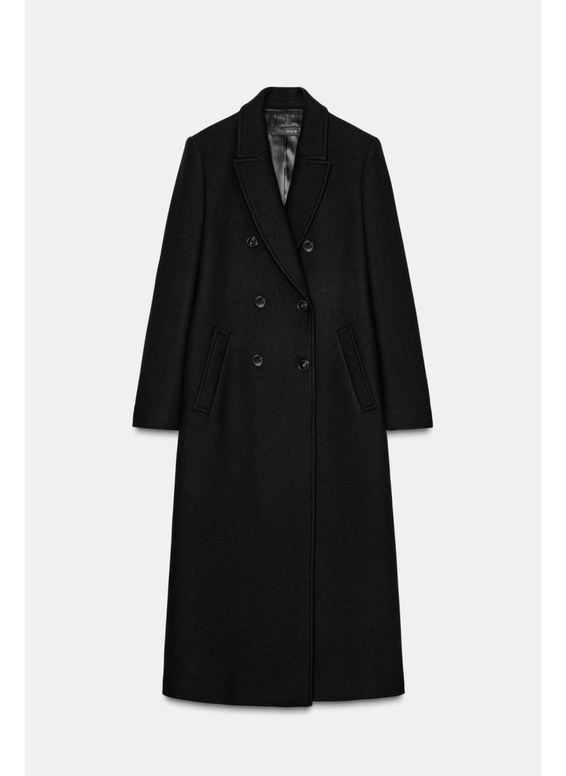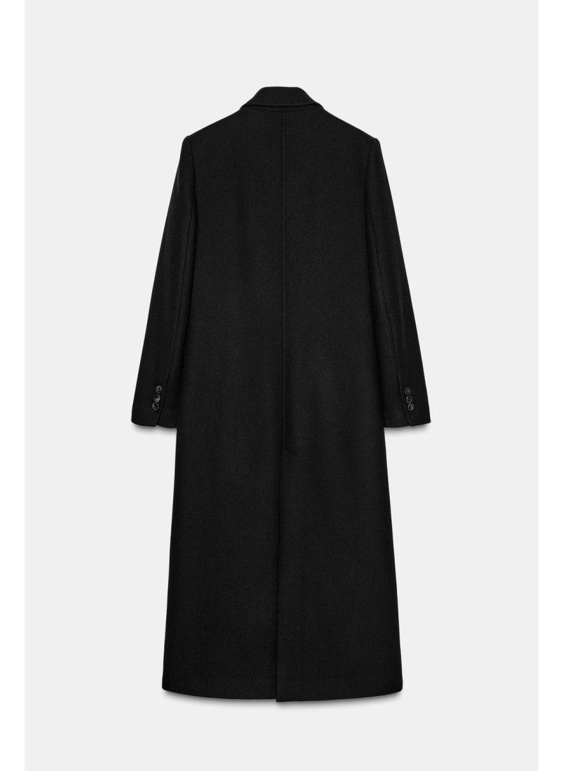 Пальто из шерсти. Имеет отложной воротник и длинные рукава с подкладками. Передние карманы в шве. Задний разрез у подола. Застежка на две пуговицы спереди.