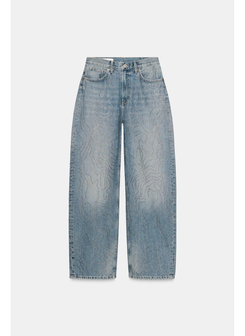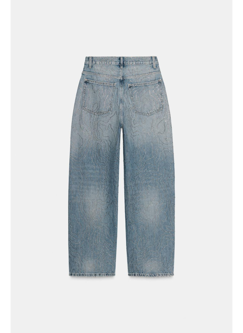 ДЖИНСЫ TRF ПРЯМОГО КРОЯ С ВЫСОКОЙ ПОСАДКОЙ И СТРАЗАМИ