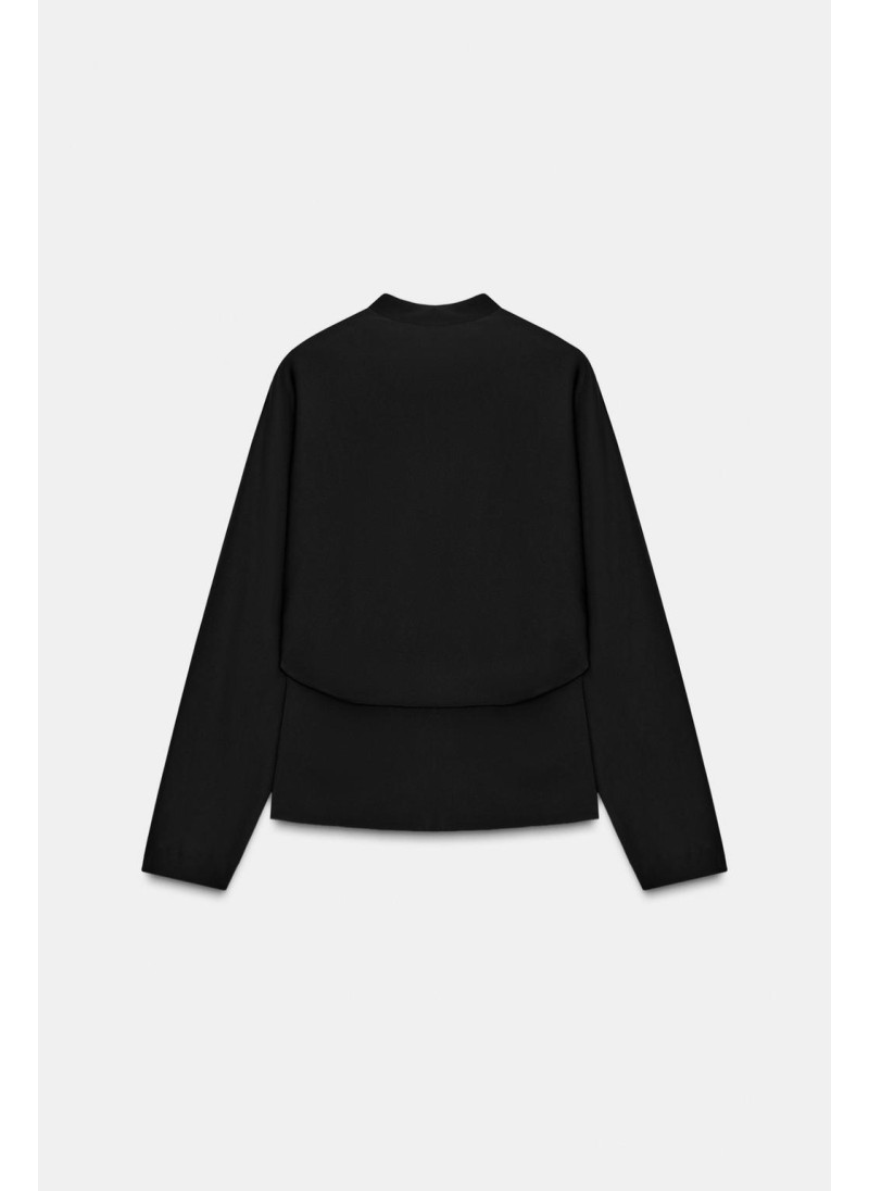 Блуза силуэта "фиттед" из вискозного микса. V-образный вырез и длинный рукав. Детали складок по бокам. Прямая нижняя кромка...