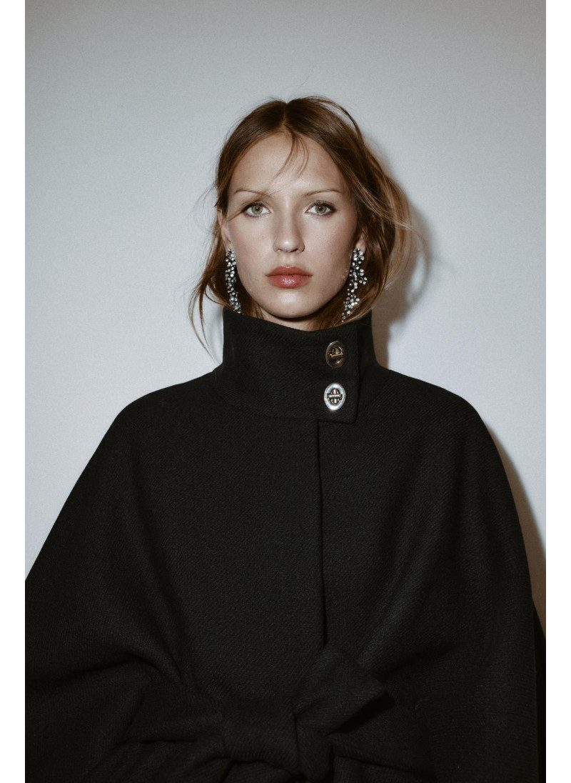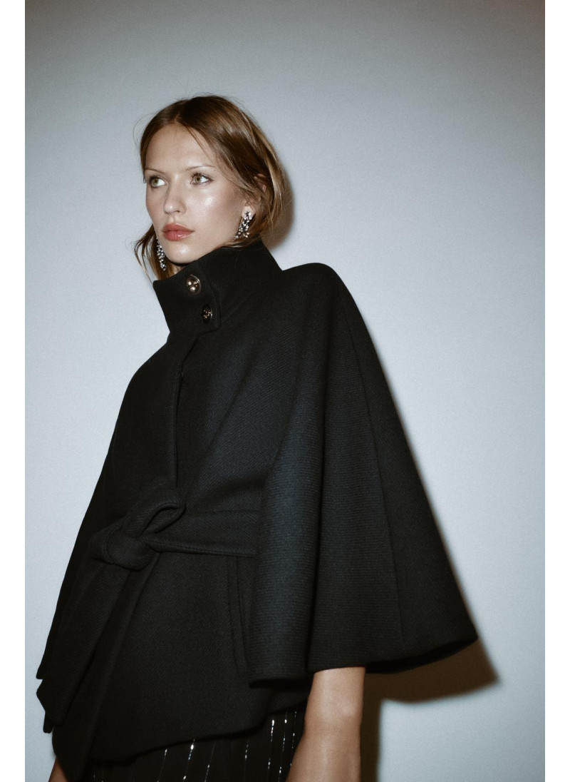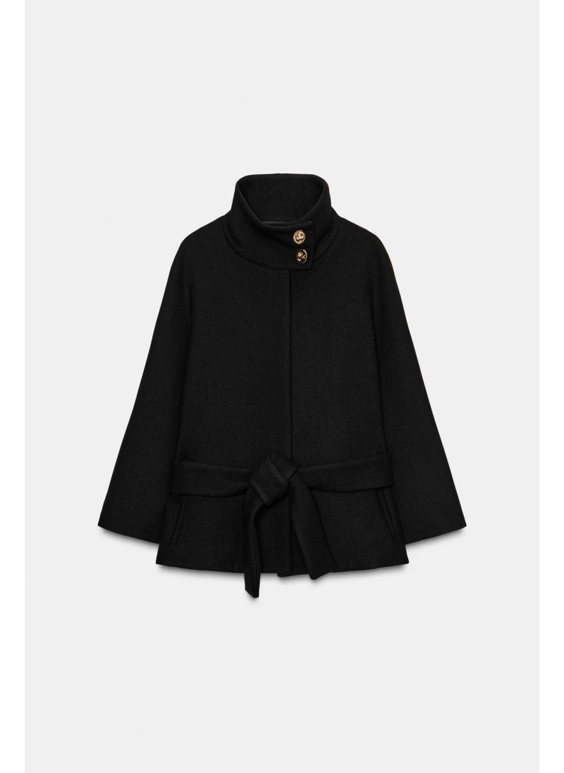 КОРОТКОЕ ПАЛЬТО-НАКИДКА С ПОЯСОМ ИЗ ШЕРСТИ