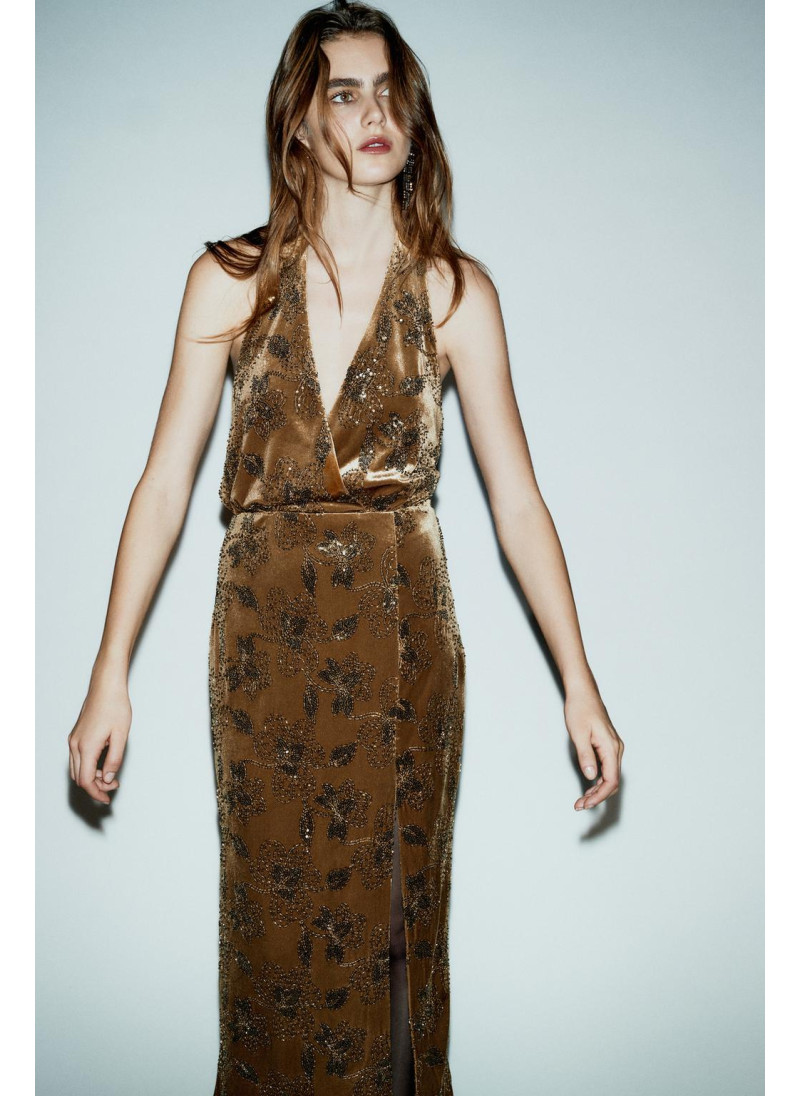 БАРХАТНОЕ ПЛАТЬЕ МИДИ С ПАЙЕТКАМИ